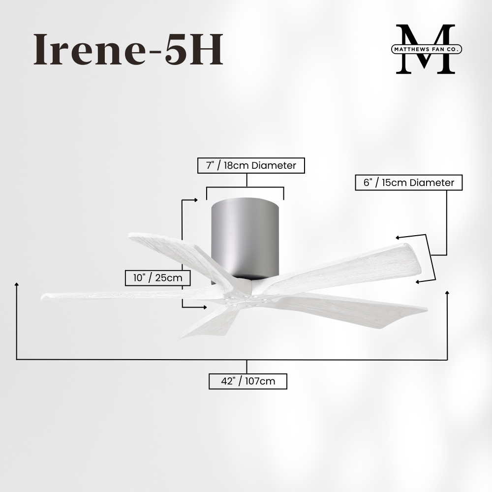 Matthews Fan Company IR5H-BK-GA-42 - Irene-5H - 42" Five Blade Flush Mount Paddle Fan - Matte Black Finish - Gray Ash Tone Blades