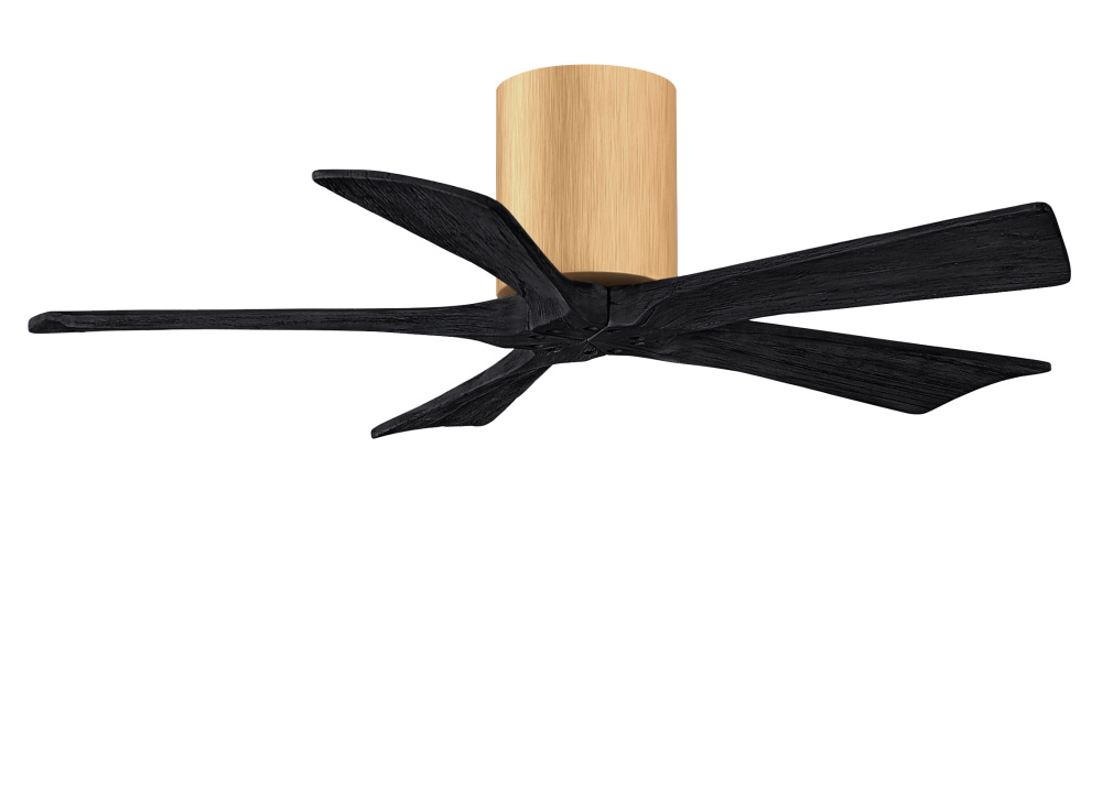 Irene-5H - 42" Five Blade Flush Mount Paddle Fan - Light Maple Tone Finish - Matte Black Blades