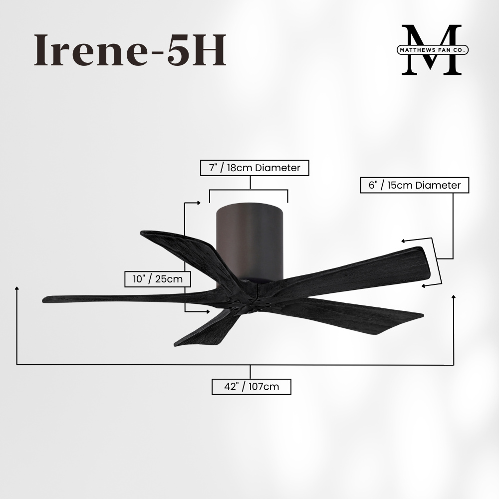 Matthews Fan Company IR5H-WH-GA-42 - Irene-5H - 42" Five Blade Flush Mount Paddle Fan - Gloss White Finish - Gray Ash Tone Blades