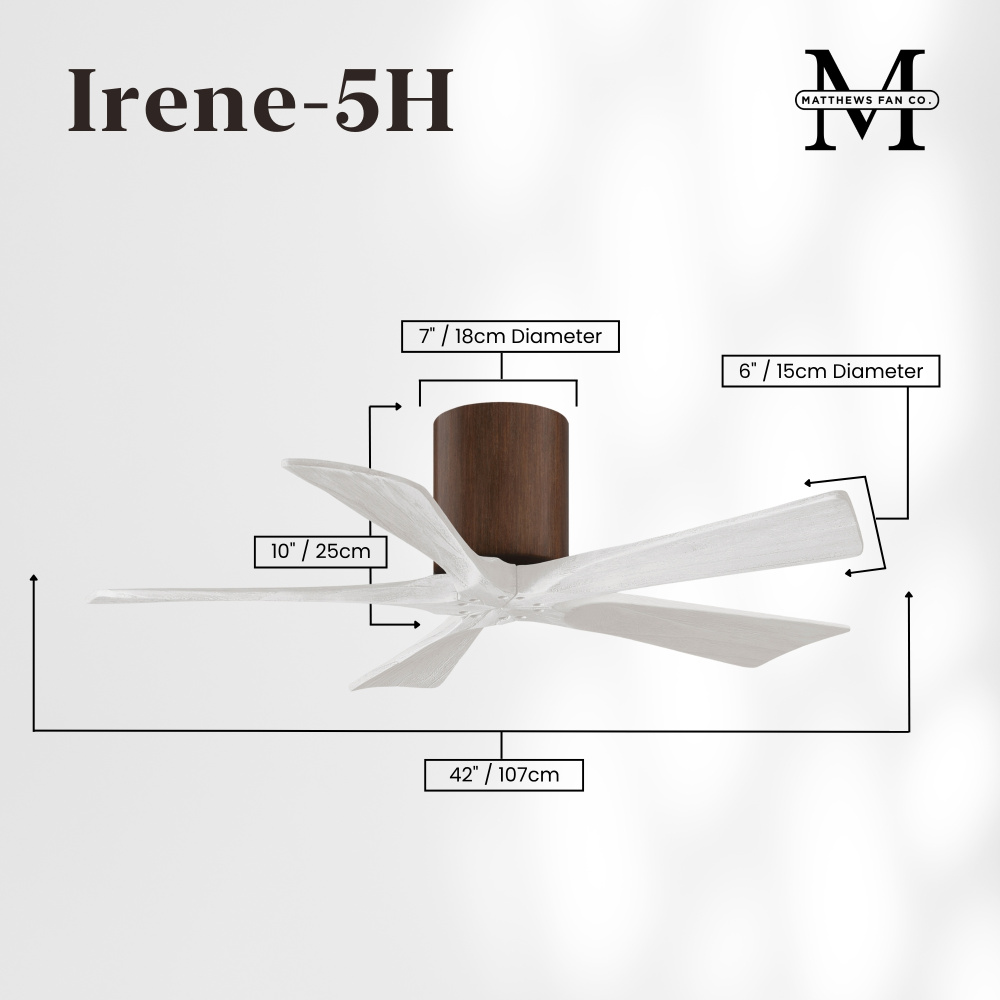 Irene-5H - 42" Five Blade Flush Mount Paddle Fan - Walnut Tone Finish - Matte White Blades