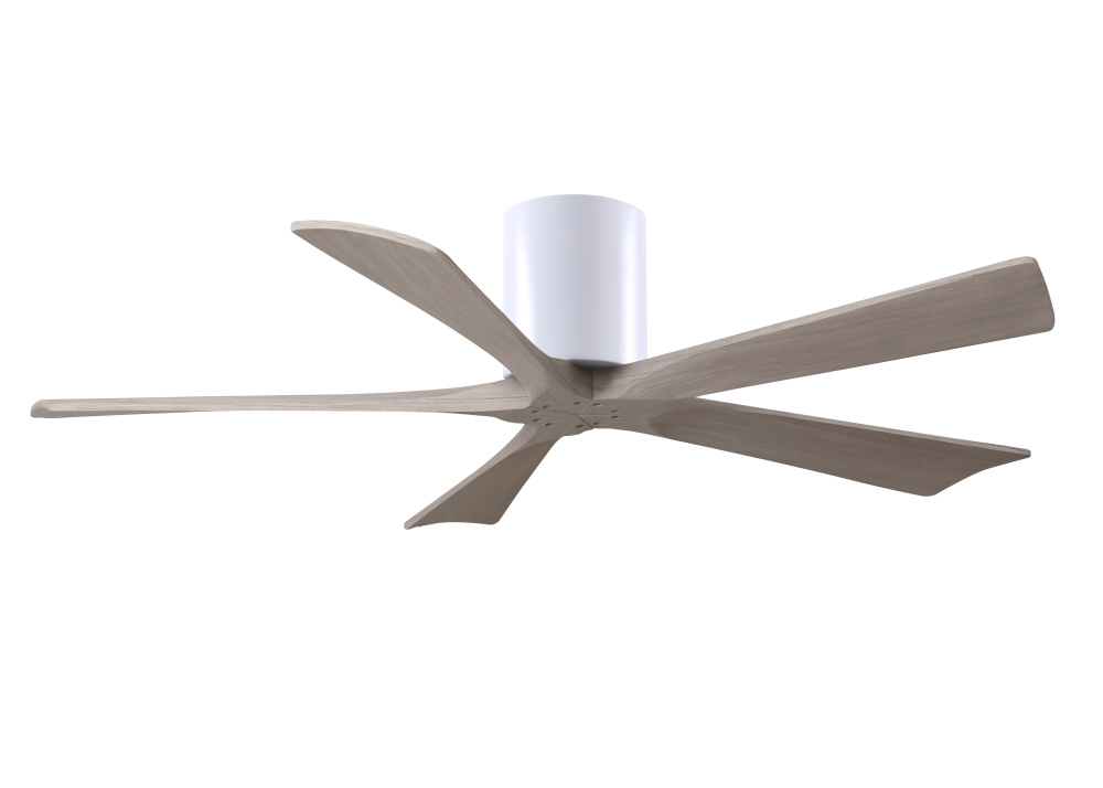 Irene-5H - 52" Five Blade Flush Mount Paddle Fan - Gloss White Finish - Gray Ash Tone Blades