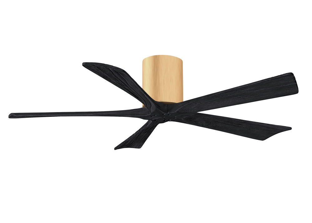Irene-5H - 52" Five Blade Flush Mount Paddle Fan - Light Maple Tone Finish - Matte Black Blades