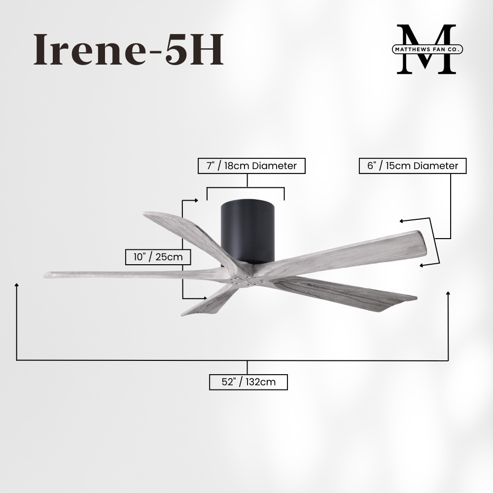 Matthews Fan Company IR5H-BB-LM-52 - Irene-5H - 52" Five Blade Flush Mount Paddle Fan - Brushed Bronze Finish - Light Maple Tone Blad