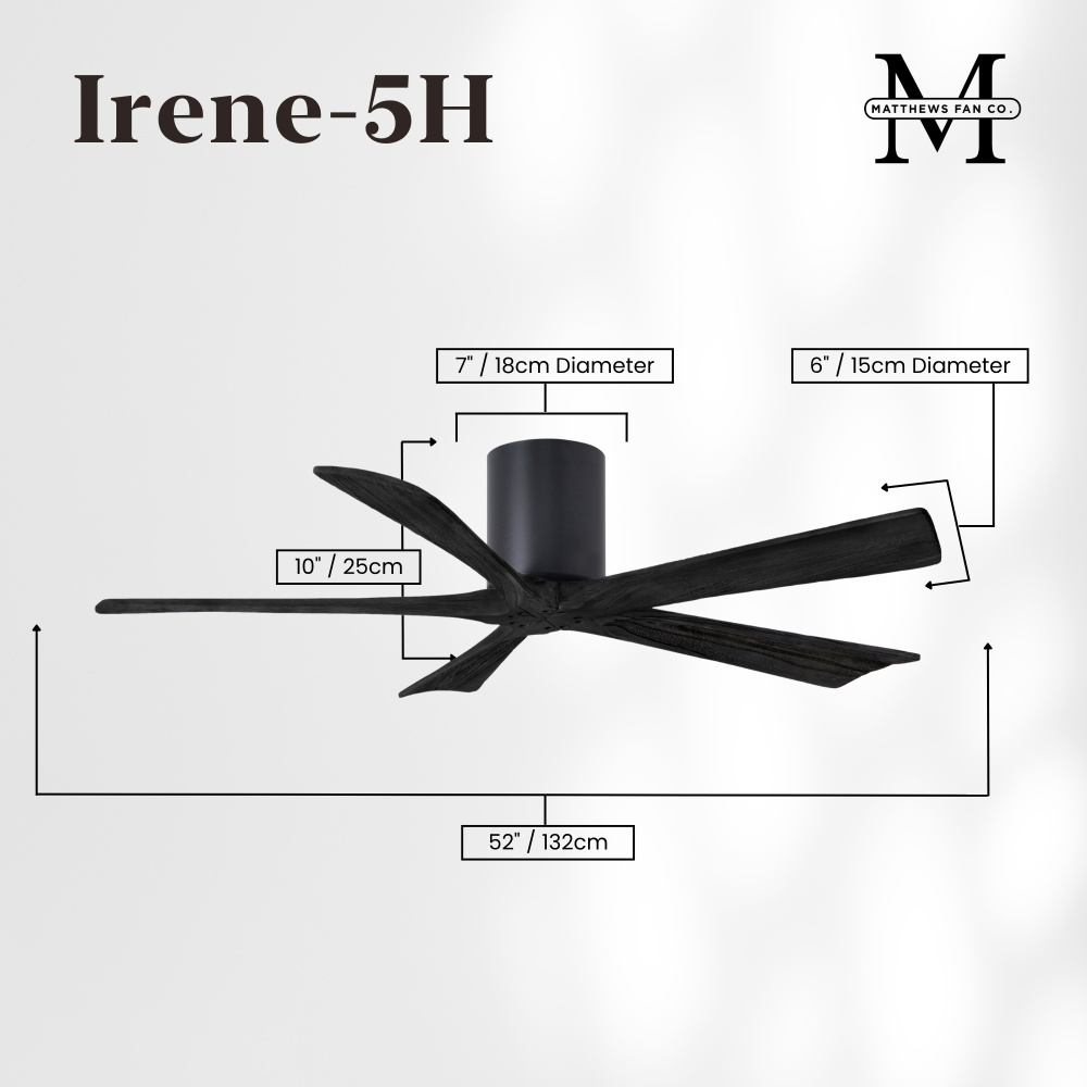 Irene-5H - 52" Five Blade Flush Mount Paddle Fan - Matte Black Finish - Matte Black Blades