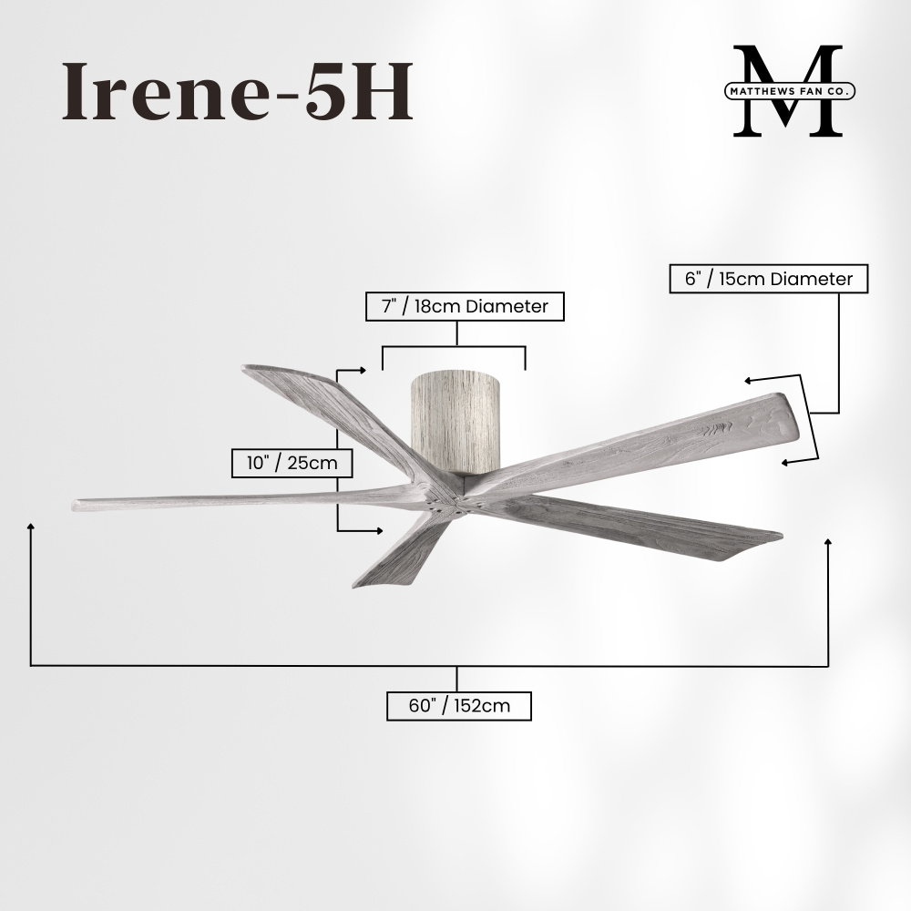 Matthews Fan Company IR5H-BP-GA-60 - Irene-5H - 60" Five Blade Flush Mount Paddle Fan - Brushed Pewter Finish - Gray Ash Tone Blades