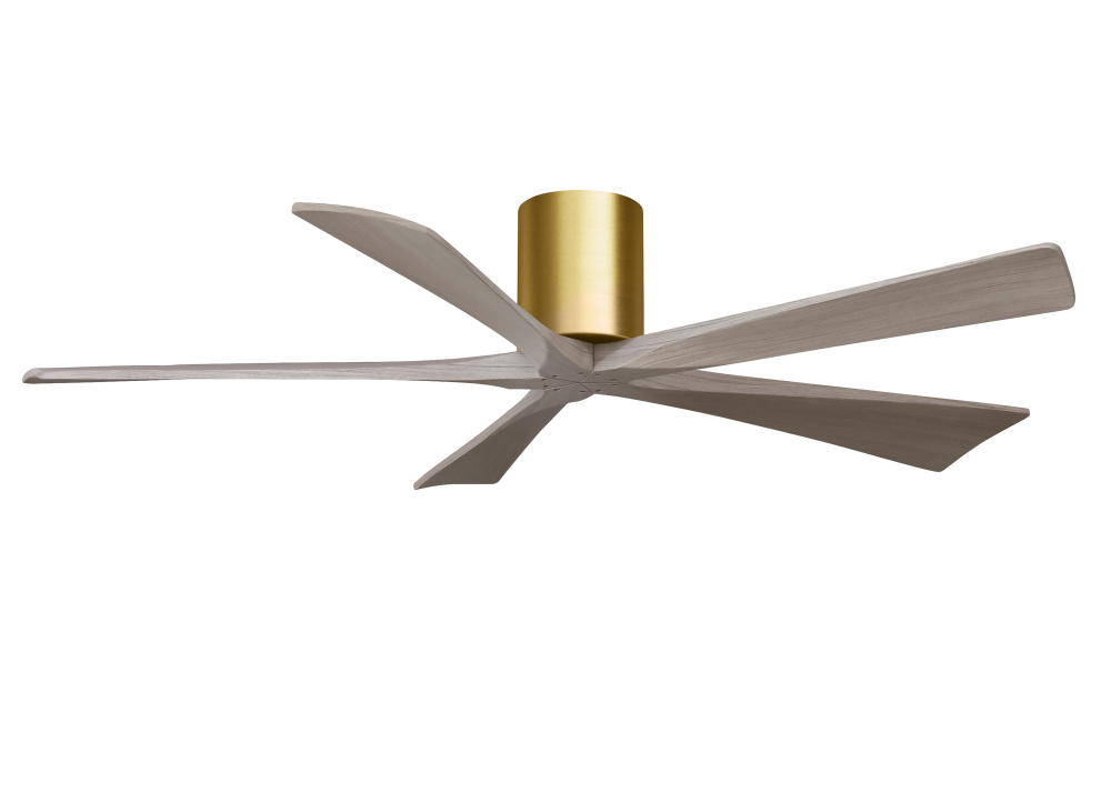 Irene-5H - 60" Five Blade Flush Mount Paddle Fan - Brushed Brass Finish - Gray Ash Tone Blades