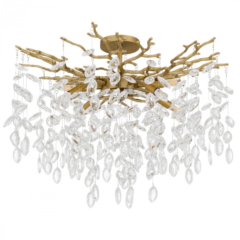 The Isobel Semi-Flush Mount Light brings a sense of enchantment to any space. Cascading strands of clear crystal glass shimmer and sway, capturing light with every delicate curve and facet. The sculptural frame—available in brushed gold for a warm, roman