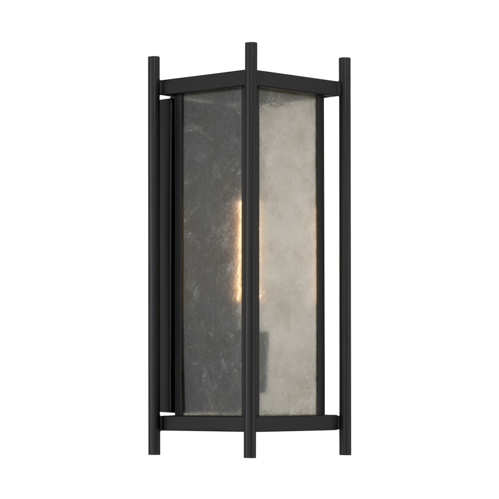 Bring refined geometry outdoors with the Savoy House Jacobs 1-light outdoor wall lantern. Its clear mica glass shade diffuses the light with captivating texture while the Black finish sharpens the silhouette for standout style. Jacobs is 16" tall, 5.75" wide and extends 6" from the wall. Uses one standard size bulb of up to 60 watts. Bulb not included. Rated for wet locations, making it ideal for covered or uncovered outdoor spaces.