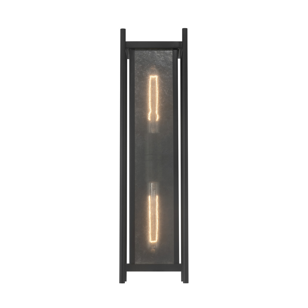 Double the glow with the Savoy House Jacobs 2-light outdoor wall lantern. Clear mica glass plays with the light to create dimensional ambiance, balanced by the crisp presence of the Black finish. Jacobs is 22" tall, 5.75" wide and extends 6" from the wall. Uses two standard size bulbs of up to 60 watts per bulb. Bulbs not included. Wet area rated for versatile outdoor placement.
