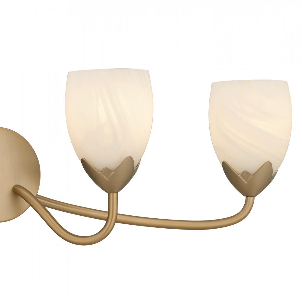 Elegant curves and soft, glowing beauty define the Jacobs Collection—a delicate balance of form and feeling. Finished in a warm bronze gold, its gracefully arched arms and petal-like cups cradle tulip-shaped etched alabaster glass shades, casting a light