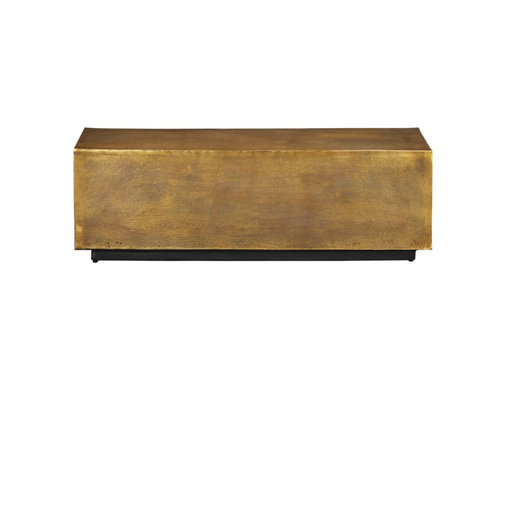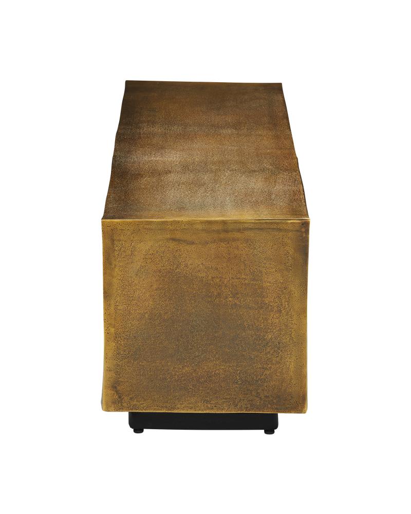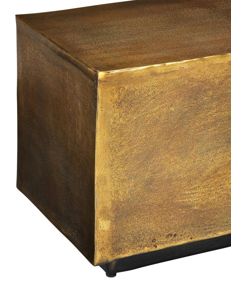 Proving that texture works well on a contemporary piece of furniture, the Jahnu Bench has a surface that is swirling with personable tonal variations and stippling. The gold bench is composed of a cast aluminum rectangle that sits atop a black plinth base, which is also made of aluminum. Though the lines of this piece are thoroughly modern, the metal bench would also shine in a setting with industrial stylistic notes.