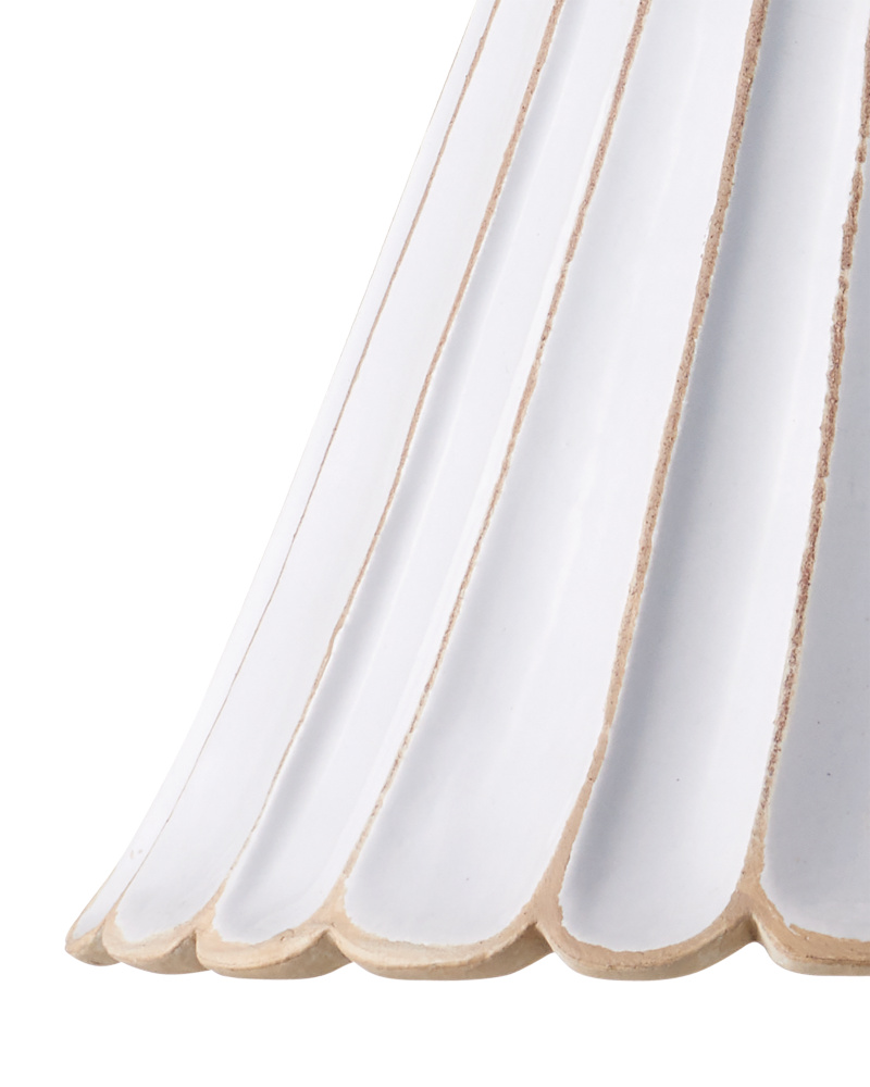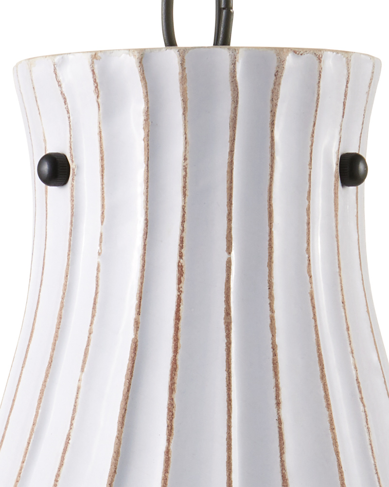 The Jazz Pendant has a fluted silhouette that culminates at the bottom in scallops for a retro vibe. A snowy white crackle finish covers the hand-thrown terracotta shade to give the white pendant a simple modern look. This is one of our fixtures that is perfect for clustering or hanging in rows.