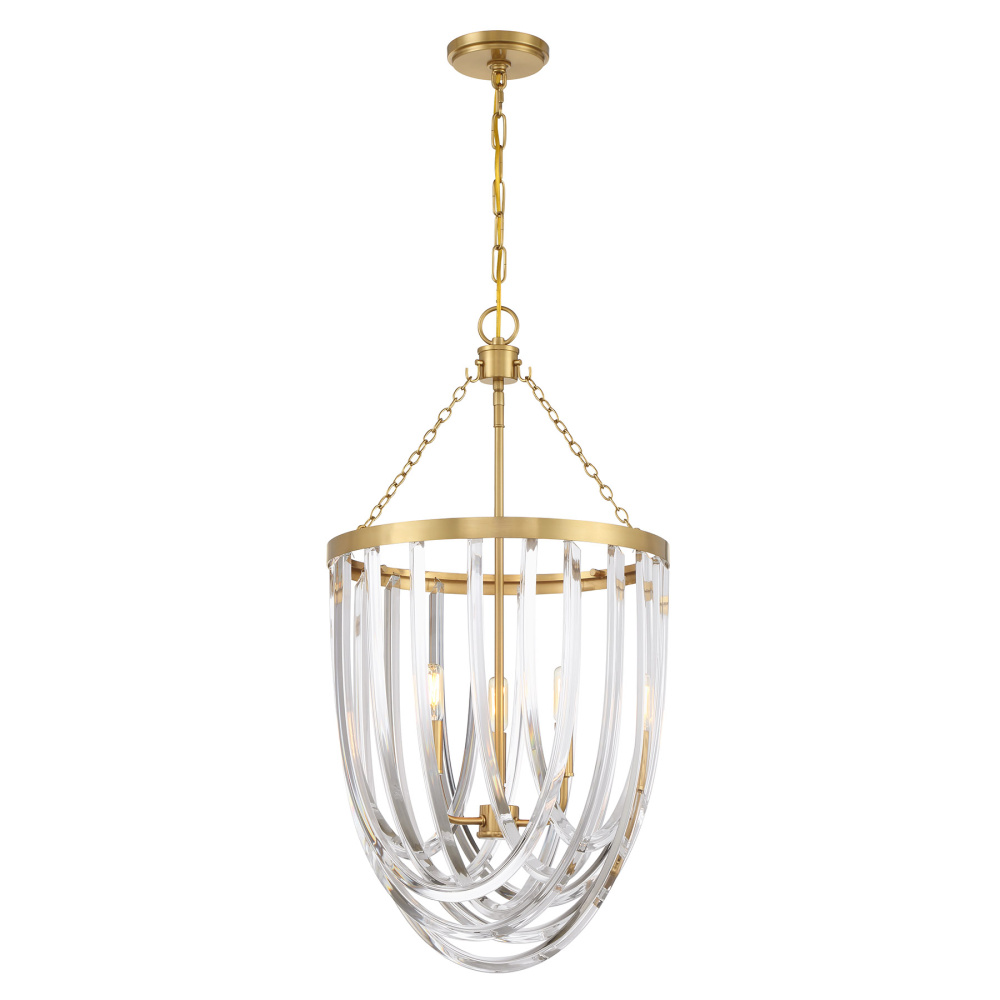 Discover a stunning new lighting look with the Savoy House Jennings 3-light foyer pendant! It shows off draping ropes of acrylic that encircle the light sources and create high-end appeal. The Warm Brass finish adds richness and intrigue. Jennings is 31" in height and 16.125" in width. It uses three candelabra size bulbs of up to 60 watts per bulb. Bulbs not included. Comes with 120" of chain and 144" of cord.