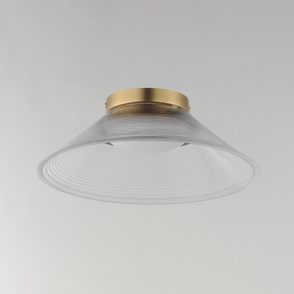 A tapered, ribbed glass shade adds a contemporary edge to a simple design. Available in Clear Ribbed glass with a plated Gold frame or in Emerald Green or Smoked glass with Matte Black frames. These retro-futuristic shades minimize peripheral glare, while