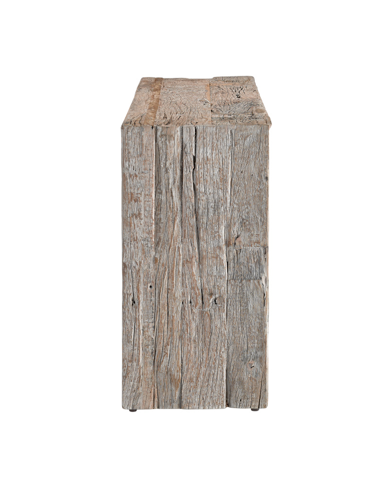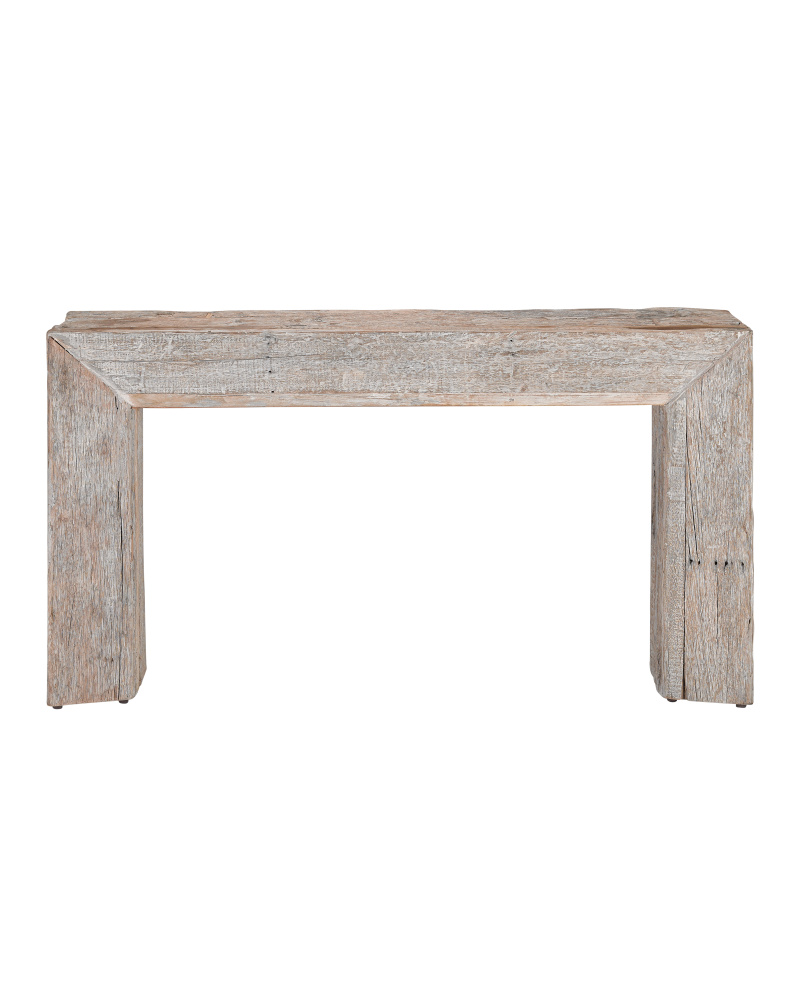Made of pieces of reclaimed wood, our Kanor Whitewash Console Table is a study in textural patina. One of our products built with sustainability in mind, the aged wood console table with its whitewash finish is naturally distressed.