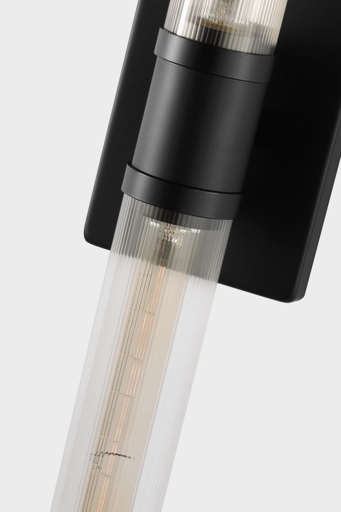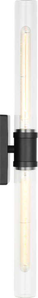 Sleek and modern, this 2-Light bath series pairs a square backplate With tubular clear fluted glass shade. The Keaton two light vanity fixture provides abundant light for your bath vanity, while adding a layer of today's style to your interior design.
