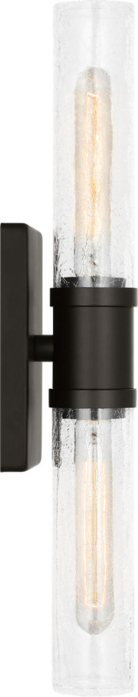Sleek and modern, this 2-Light bath series pairs a square backplate With tubular clear crackle glass shade. The Keaton two light vanity fixture provides abundant light for your bath vanity, while adding a layer of today's style to your interior design.