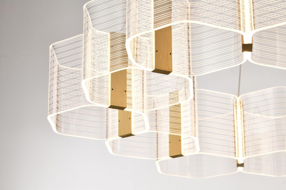 Unveil the art of Modern design with the Kenzo Collection, where bold geometric styling meets sculptural elegance. The parallel lines create a dynamic visual effect, blending symmetry with artistry for a look that captivates. Edge-lit acrylic shades provid