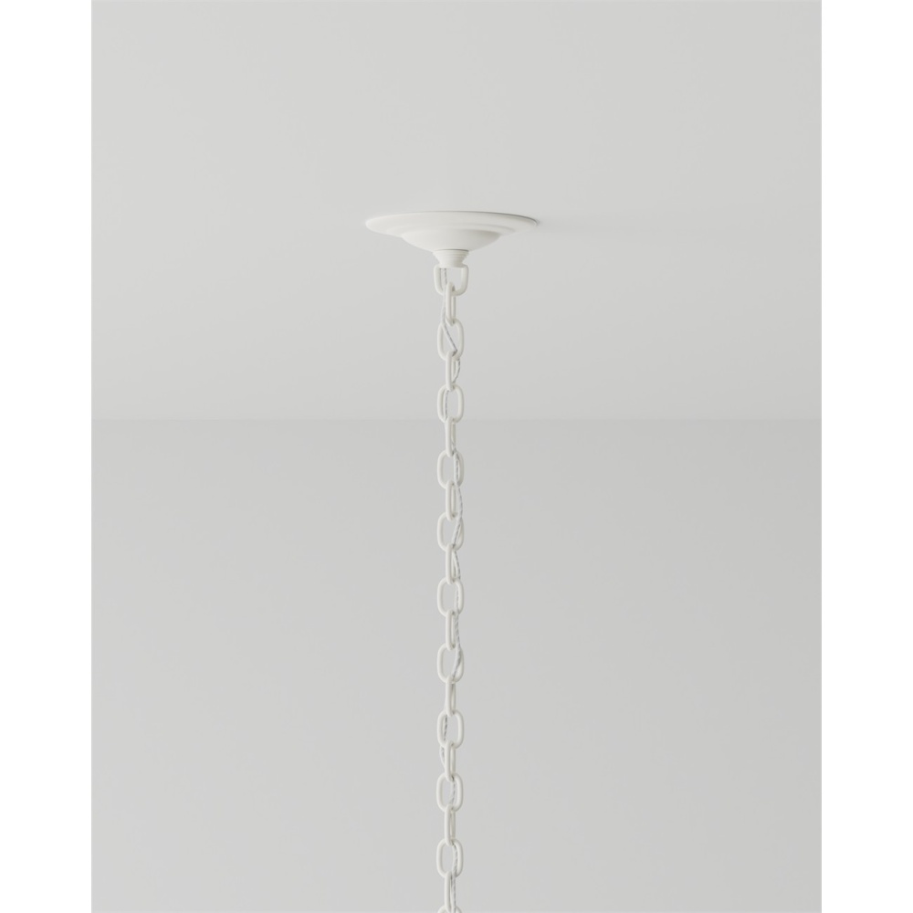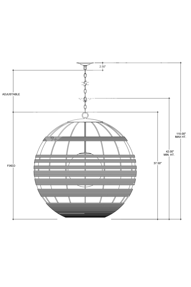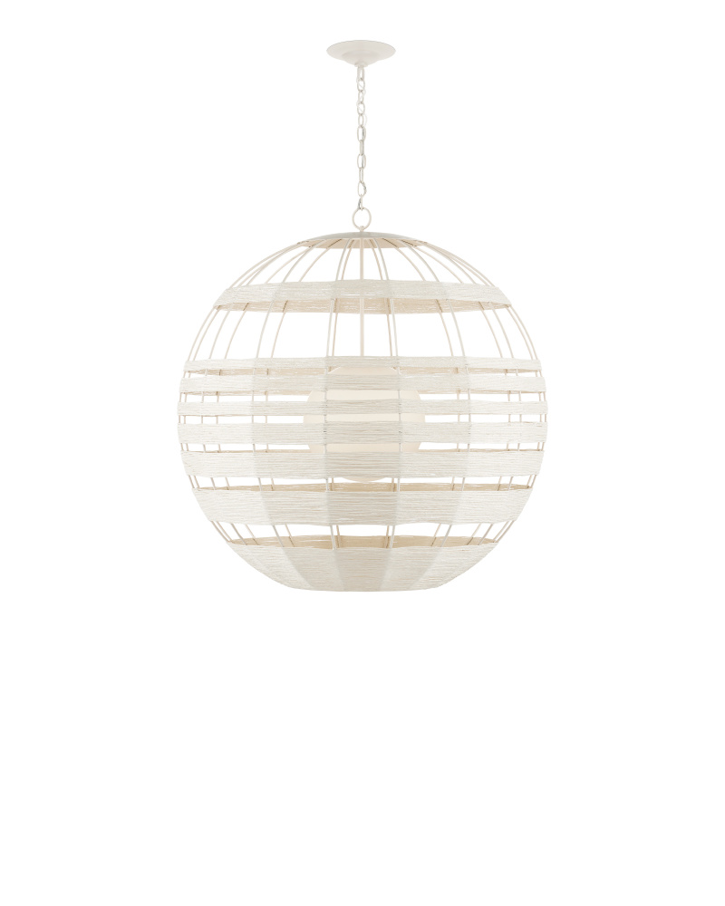 Inspired by the planet Jupiter, the Lapsley Orb Chandelier features irregular bands of twisted Kraft paper twine. The globe cage wrapped by the string is completed in a vanilla finish; the pale intermingling of materials making this a stunning design. A white frosted glass globe evenly distributes the light on this overscaled white chandelier. Adjustable from 42" to 110" with use of included chain/rod kit/cable. If your space calls for a longer drop, additional chain/rods/cable is available for purchase.