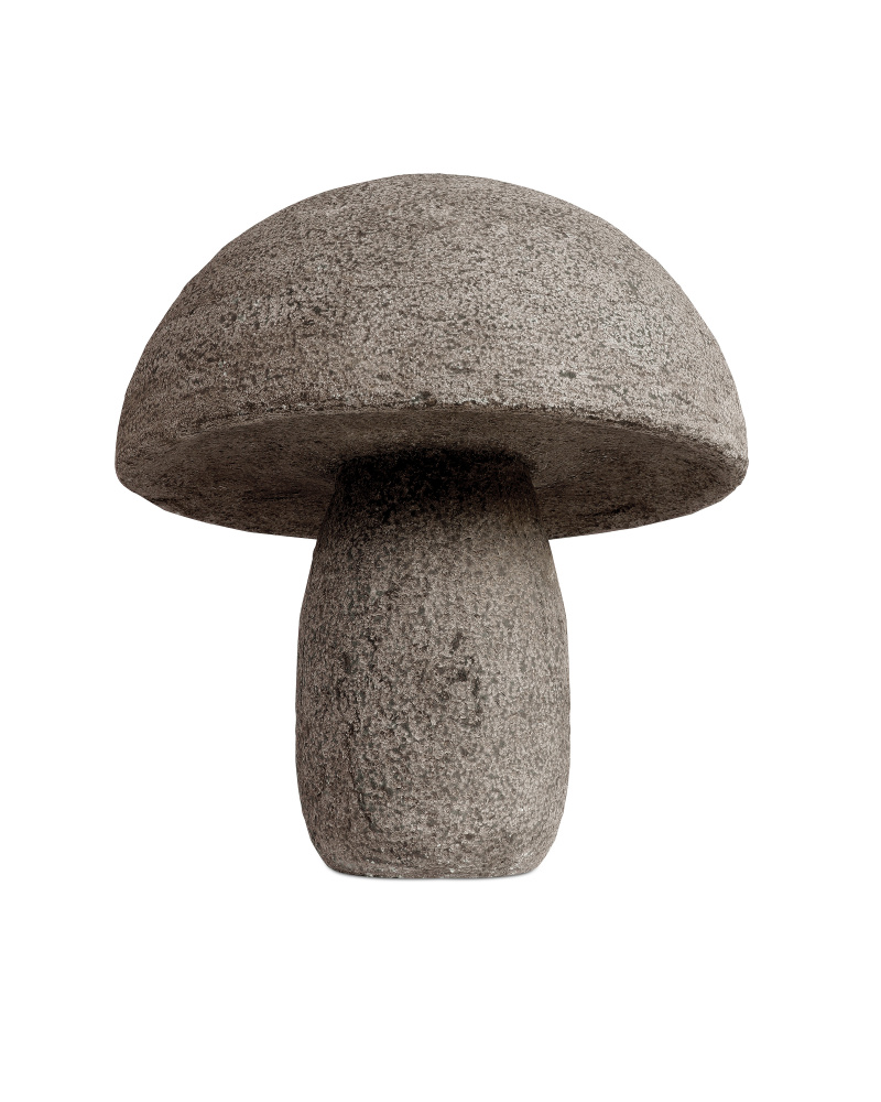 To create the Large Granite Mushroom, artisans take a cube of stone and carve it until they reach a perfect mushroom shape. They then finish the sculpture in a textured brown to make it look like it's an aged garden artifact.