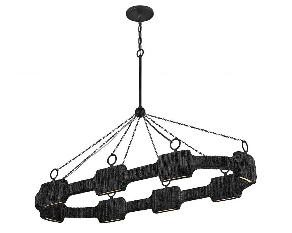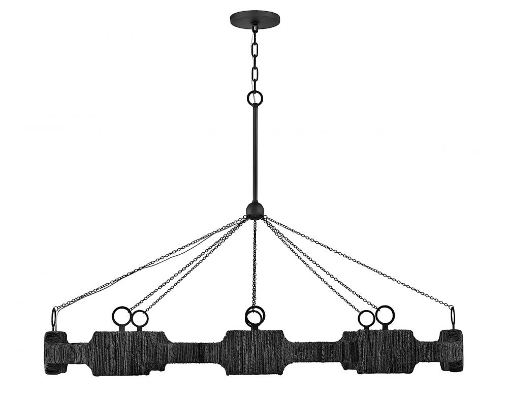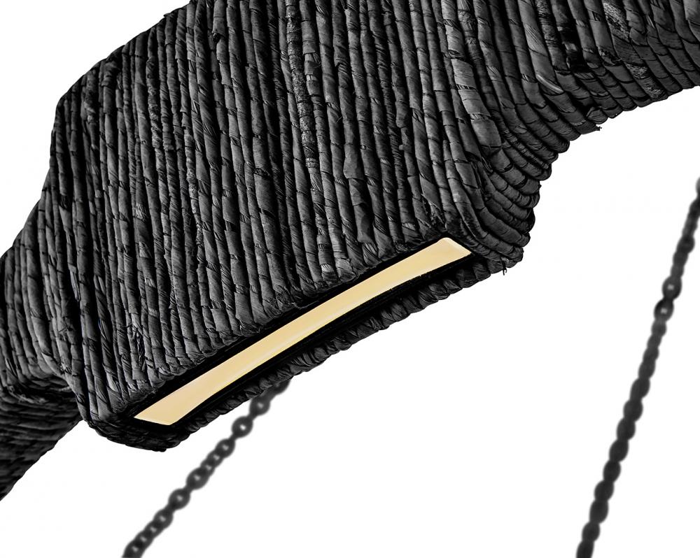 Raffi's coastal bohemian vibe is balanced by its distinctively modern shape. A unique LED design offers abundant light, while a slim frame hand-wrapped in natural reeds provides unexpected texture. Bold Carbon Black or Burnished Gold finishes perfectly complement any color palette.