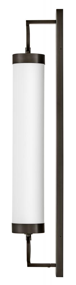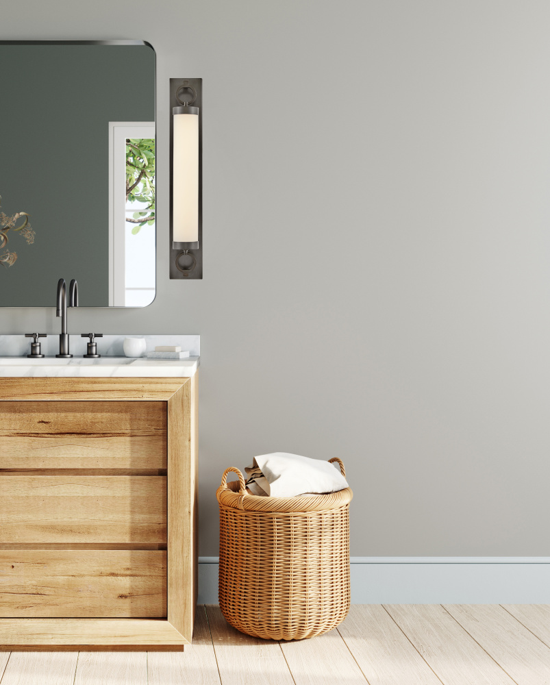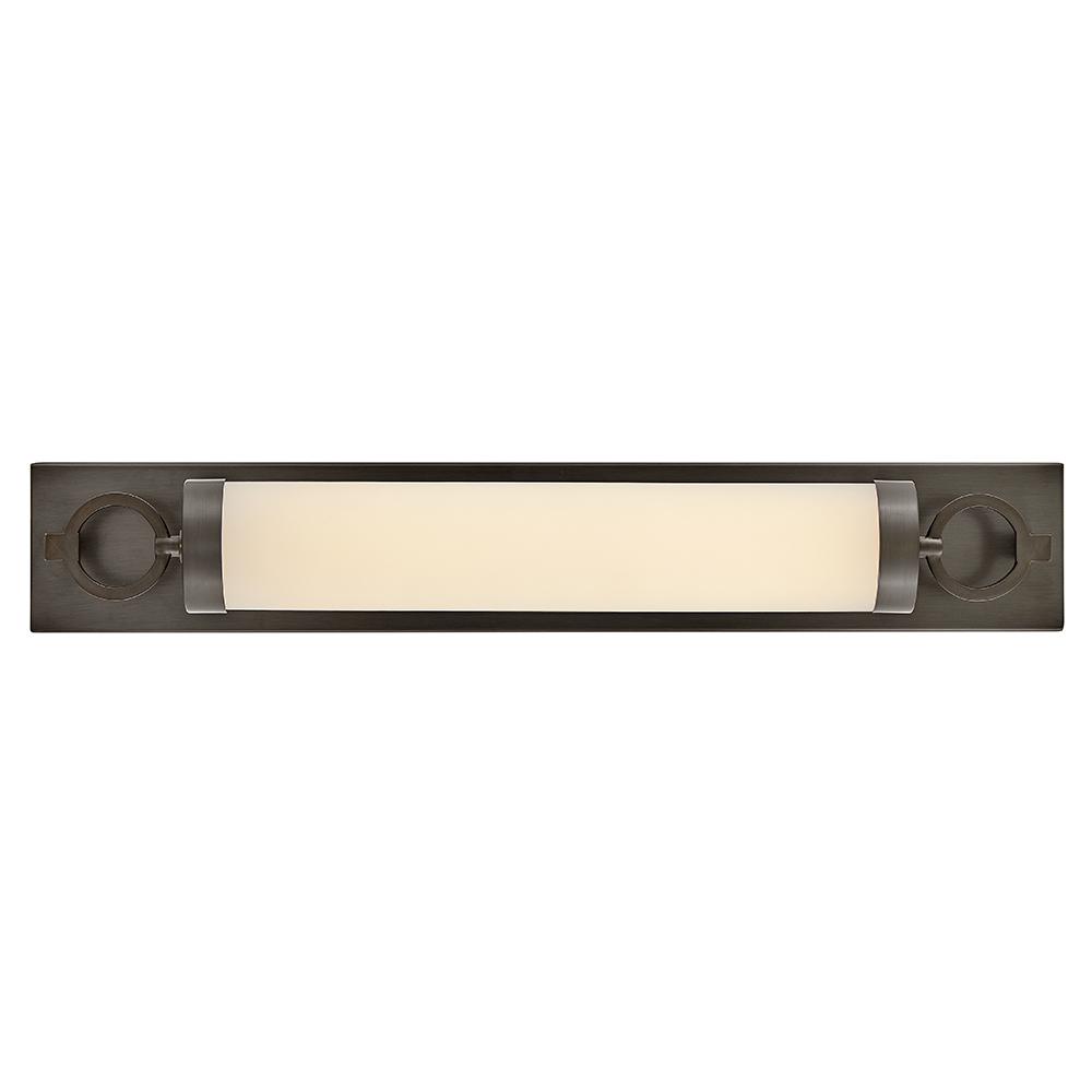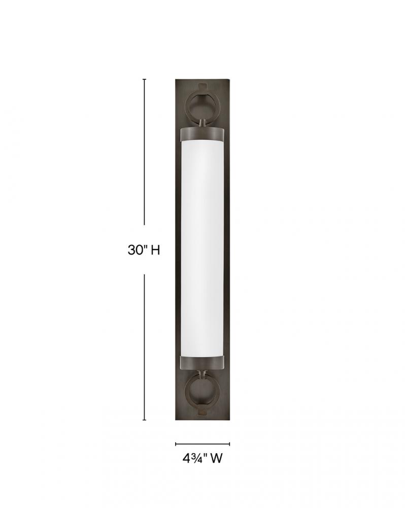 For a fixture that is an industrial piece of art, look to Baylor. The sturdy back plate and decorative rings add a nice balance to the etched opal glass to finish off the strong, substantial look. Ideal for providing plenty of functional light, Baylor mounts cleanly to the wall vertically or horizontally to bring style to primary bath, powder rooms, and more. Baylor is part of the Lisa McDennon Collection.