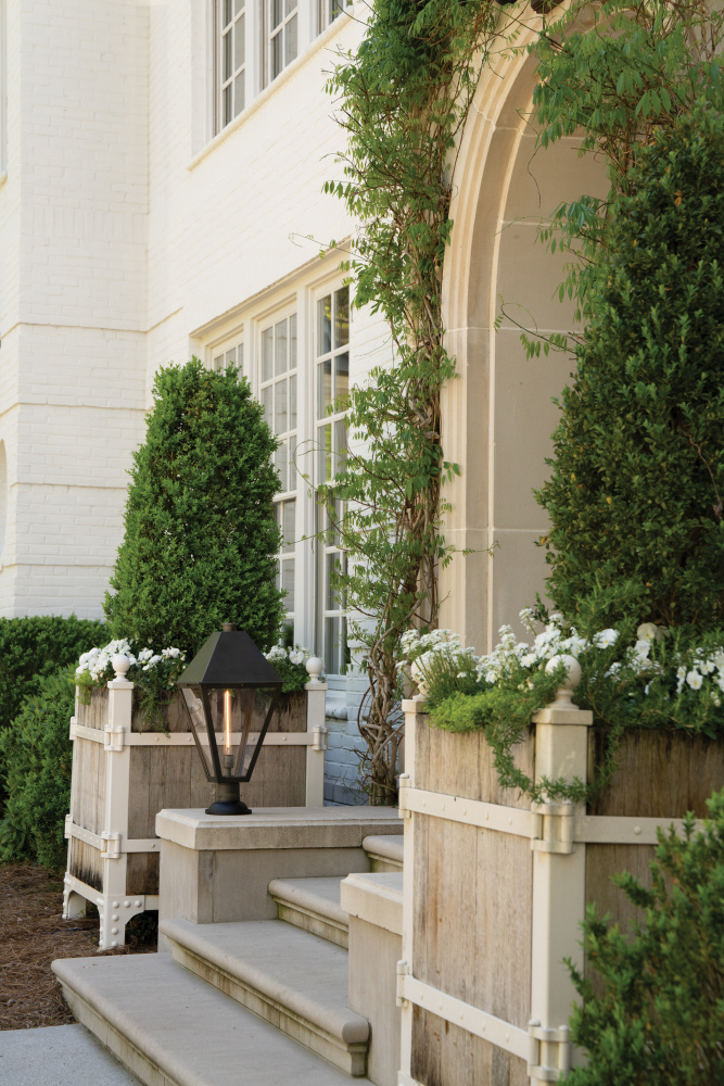 Endsley’s stately, modern gas lantern design features an oversized roof with a simple chimney, complemented by tall, clear glass and a painted, artisanal Blackened Brass finish. Each dignified fixture embraces traditional architectural details yet feels right at home in contemporary outdoor spaces.