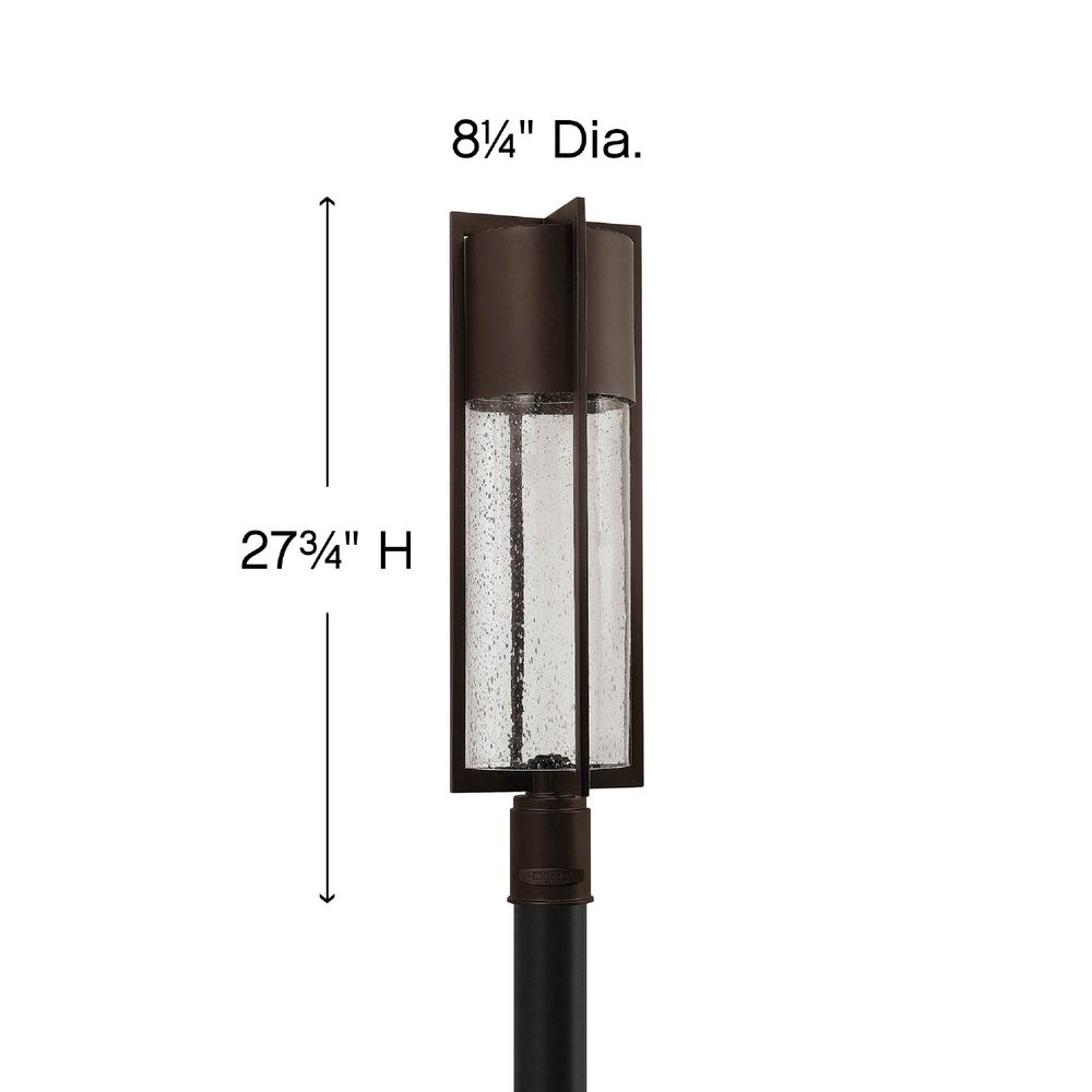 Shelter’s minimalist style in aluminum creates a chic, dramatic statement as the light from above grazes through its clear seedy glass. Shelter comes standard Dark Sky compliant.