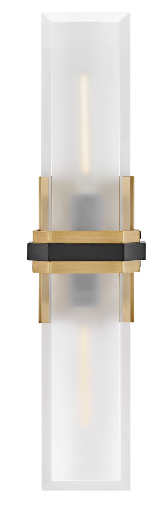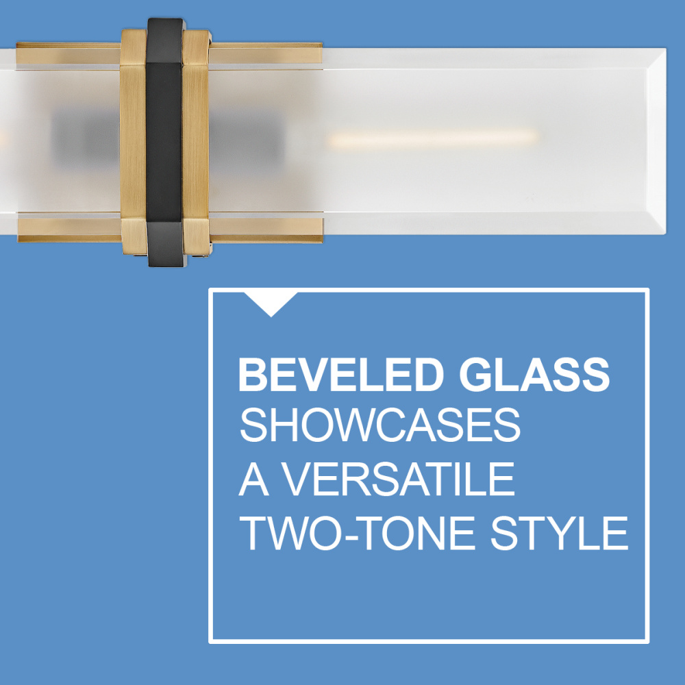 Intriguing and chic, Kipton’s captivating design showcases beveled clear glass surrounding a frosted, etched front, creating a soft and varied effect. A cast central cuff and minimalist back plate create a versatile, transitional style with a classic two-tone finish.