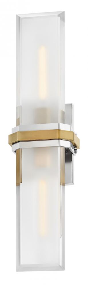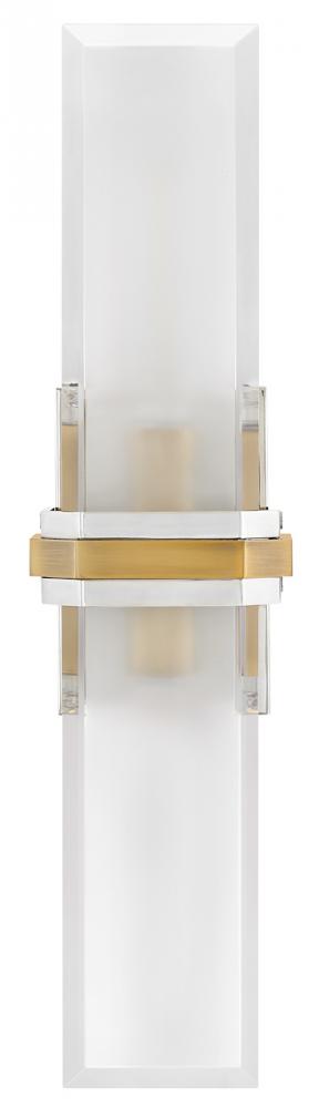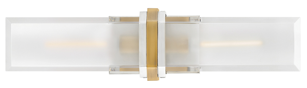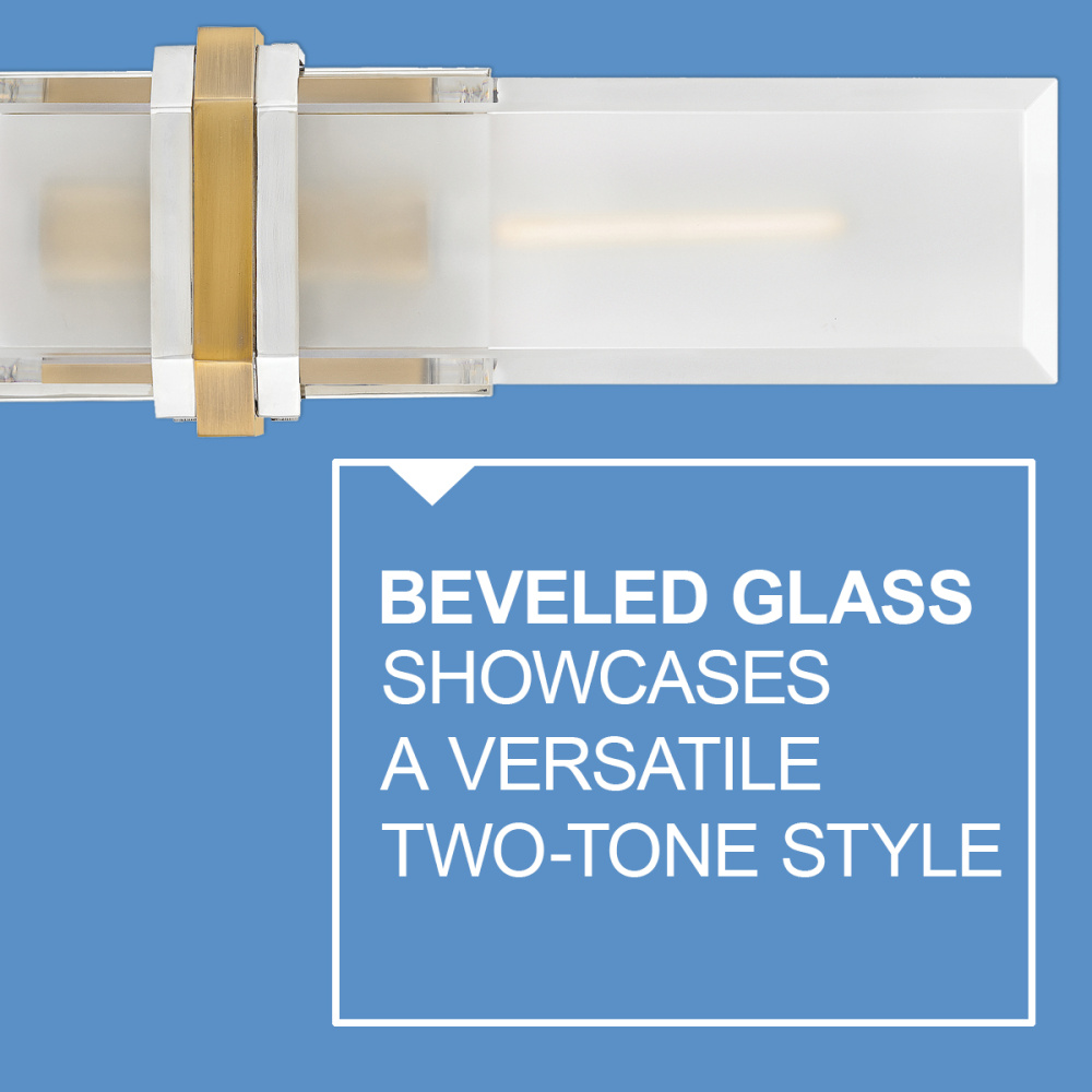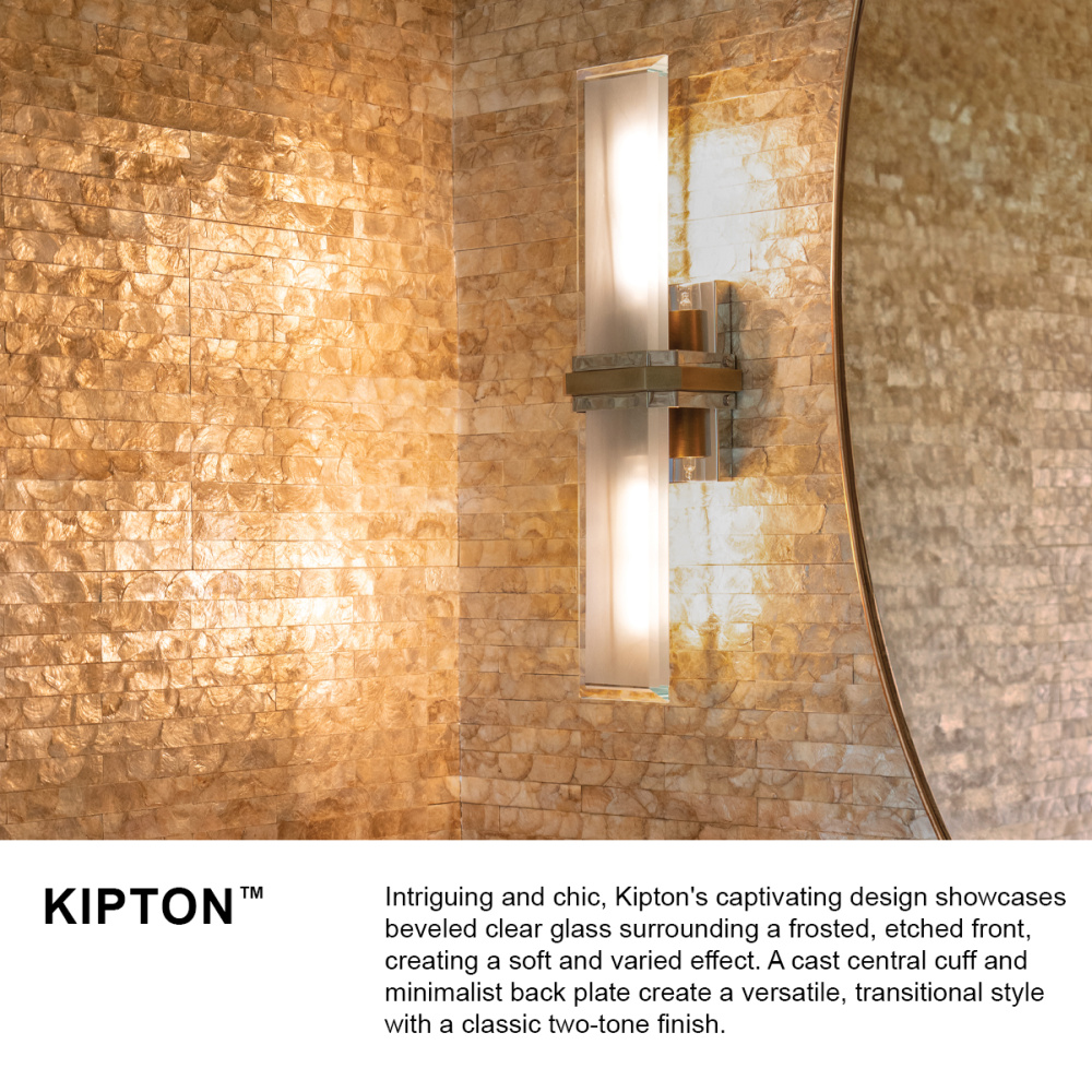 Intriguing and chic, Kipton’s captivating design showcases beveled clear glass surrounding a frosted, etched front, creating a soft and varied effect. A cast central cuff and minimalist back plate create a versatile, transitional style with a classic two-tone finish.