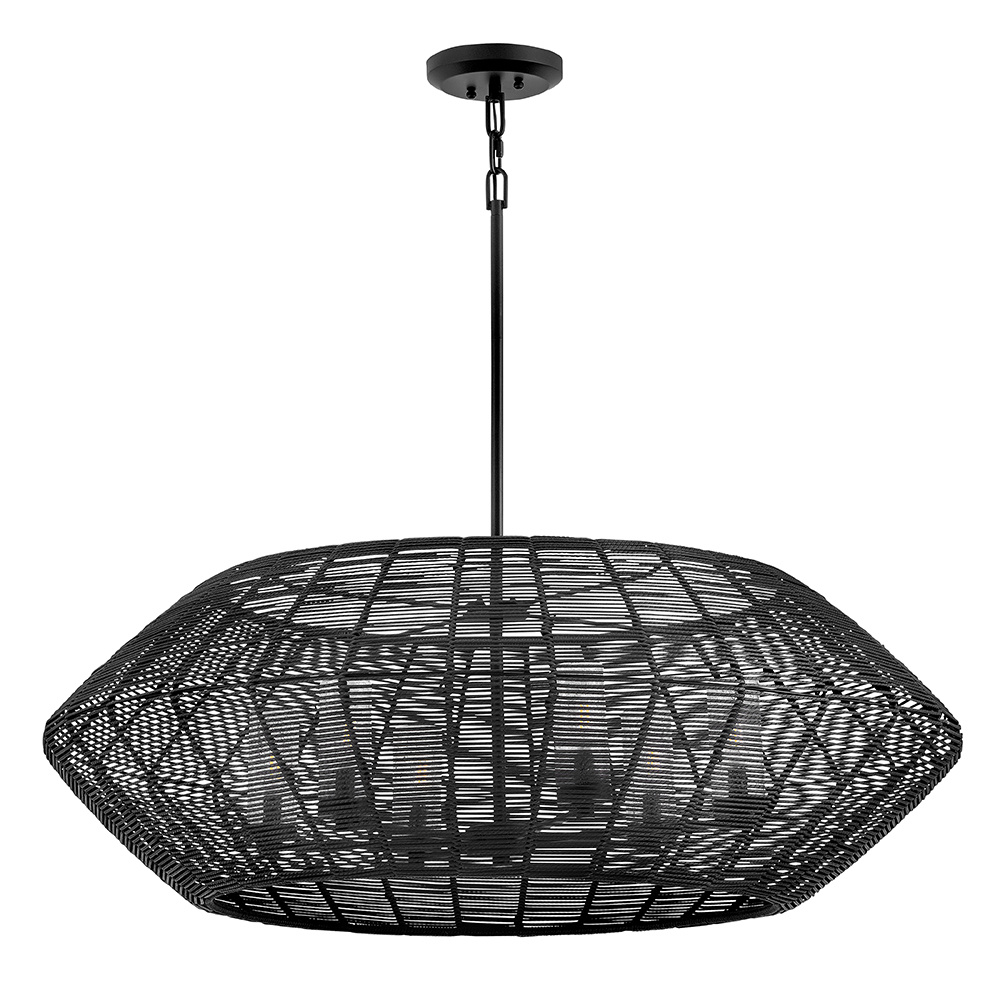 Luca's coastal vibe is permeated with a slightly exotic edge. The bold silhouette showcases a robust, weather-resistant, woven drum shade and candelabra lamps enclosed in clear, seedy glass for plenty of functional light. Offered in a variety of finish options. Luca is part of the Lisa McDennon Collection.