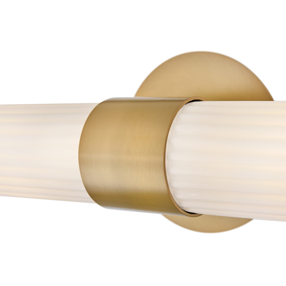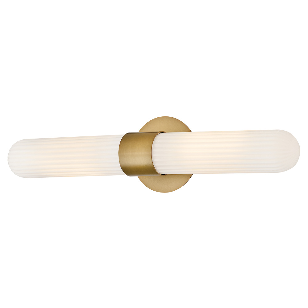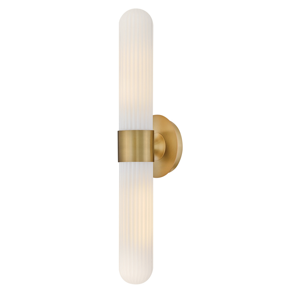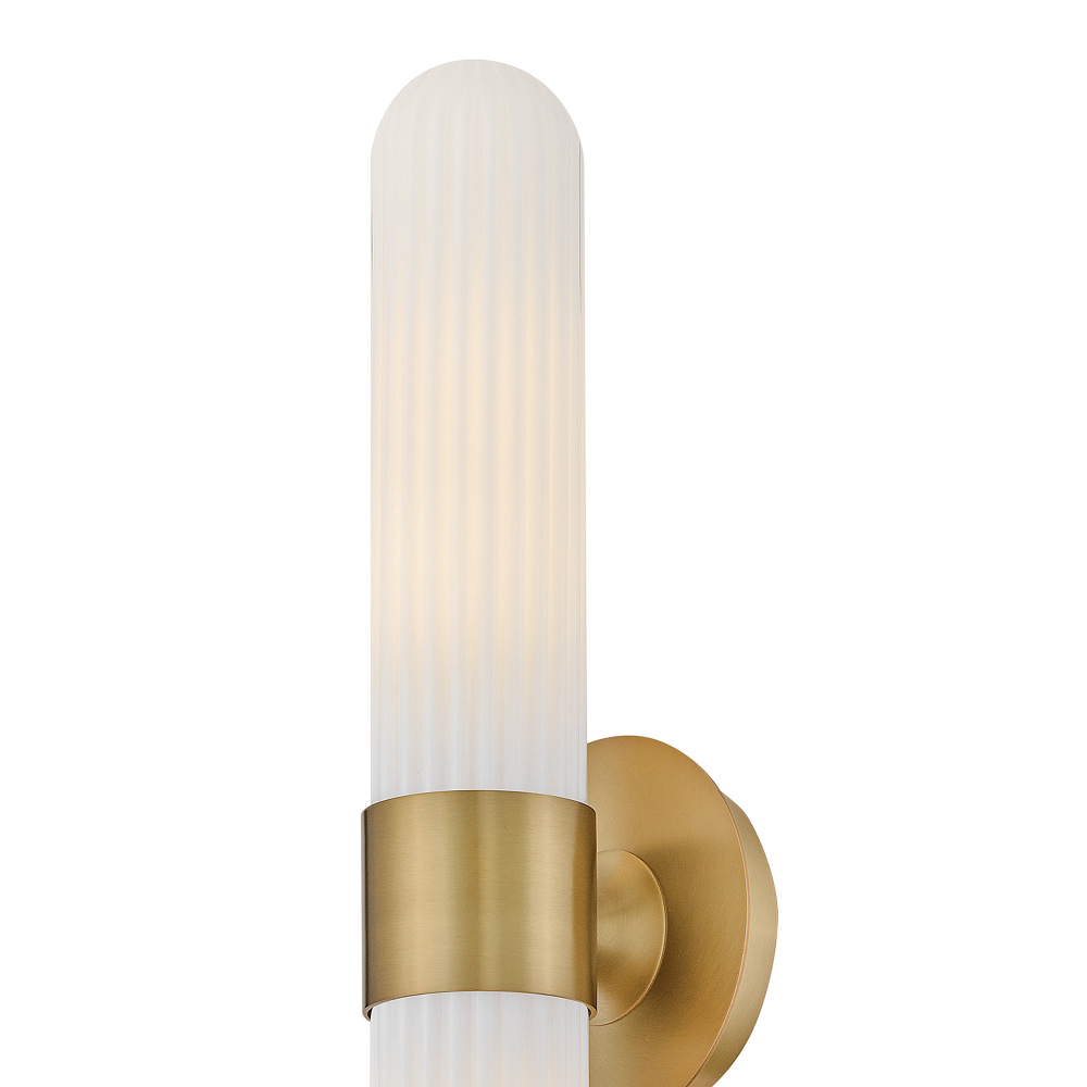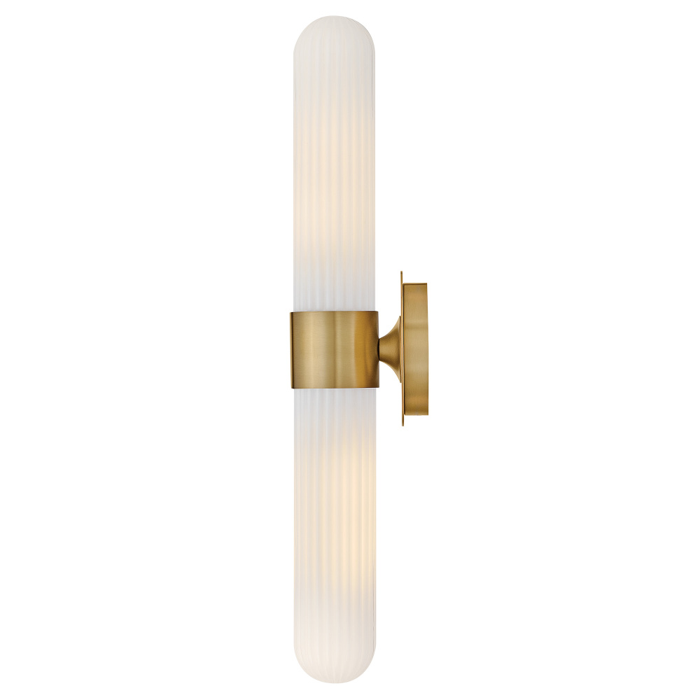 Blending transitional modern style with plenty of functional illumination, Nina is crafted to add a timeless accent to your bath or living space. Rounded Cased Opal glass shades with ribbed detailing glow beautifully, casting warm, even light throughout the surrounding room. A metal backplate and flared arm are finished in Black, Chrome, or Lacquered Brass to complement any decor effortlessly.