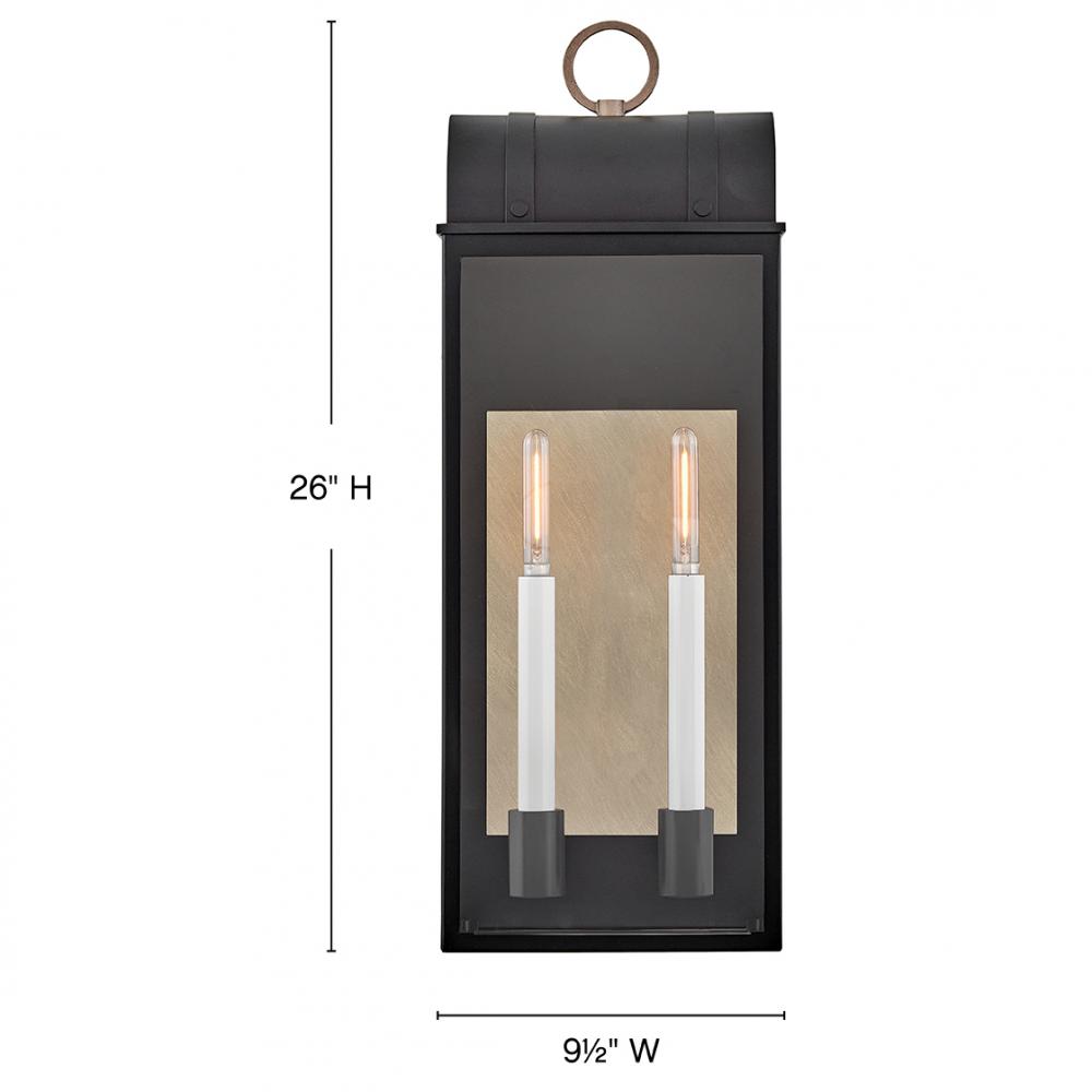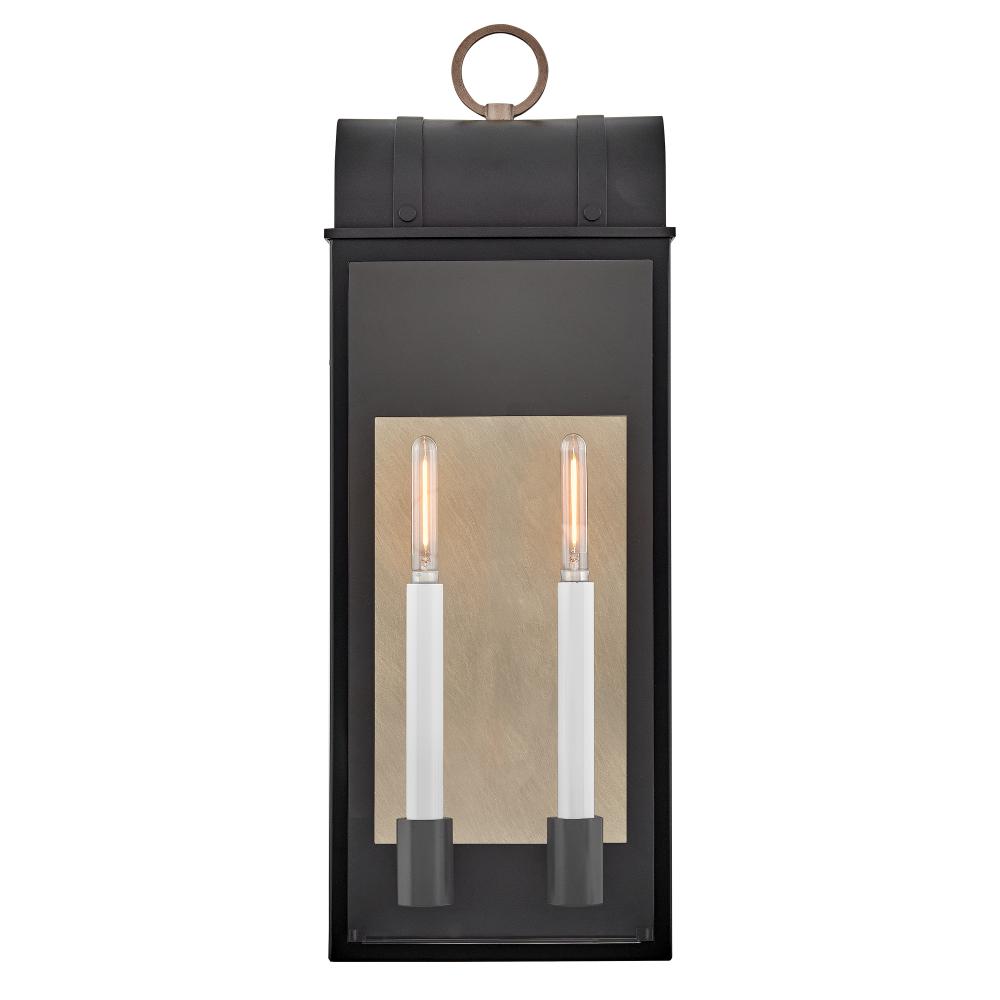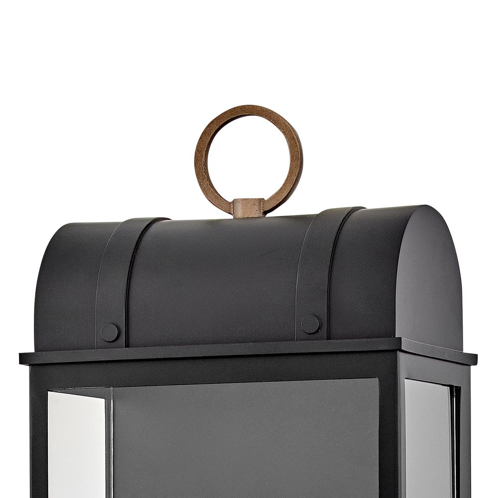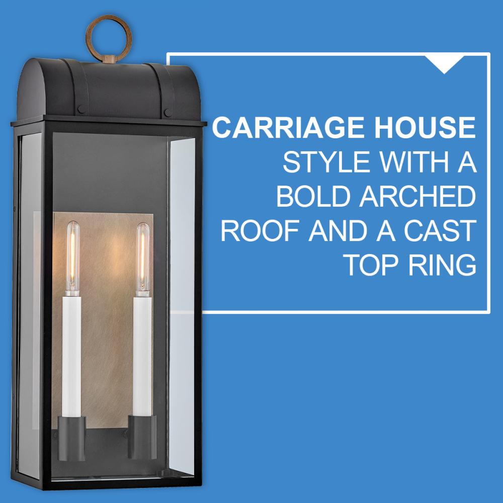 Inspired by traditional colonial lanterns, Campbellās carriage house styling complements classic architecture accentuated by a bold arched roof and a cast top ring. Candelabra lamps with contrasting warm white candle sleeves are enhanced by a Black with Burnished Bronze finish and a reflective backplate.