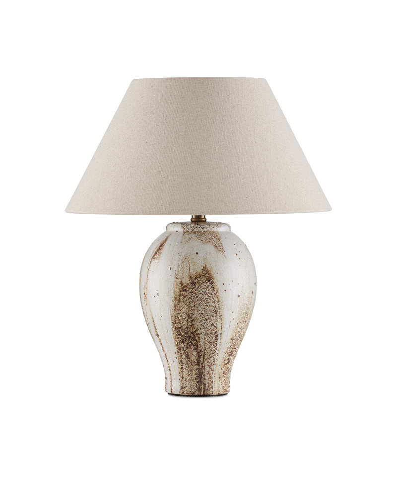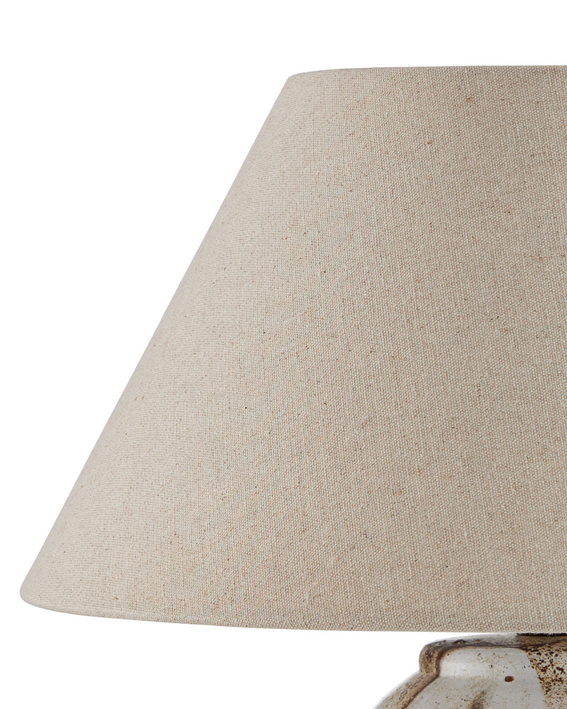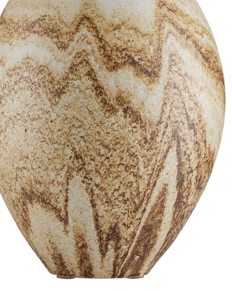 The Latte Beige Table Lamp is made of ceramic in a mix of beige, off-white, and brown glazing that mimics the way cream swirls into coffee. Because glazing ceramic is an artisanal process, this design will vary from piece to piece. The warmth of the empire shade when the lights are switched on draw out the tan tones in the lamp's body.