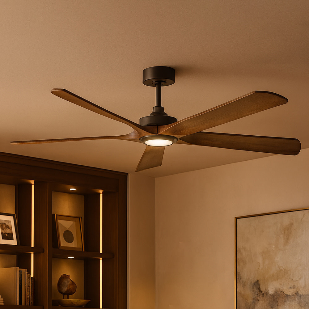 Layton’s versatile, transitional design features subtly curved wood blades, available in a variety of finish combinations to complement any interior living space. Integrated LEDs cast warm, dimmable illumination that fills your space with a comfortable atmosphere. Equipped with a 6-speed DC motor that is WiFi enabled and ready to connect right out of the box. Operated by the HIRO control or WiFi compatible with the Hinkley App.