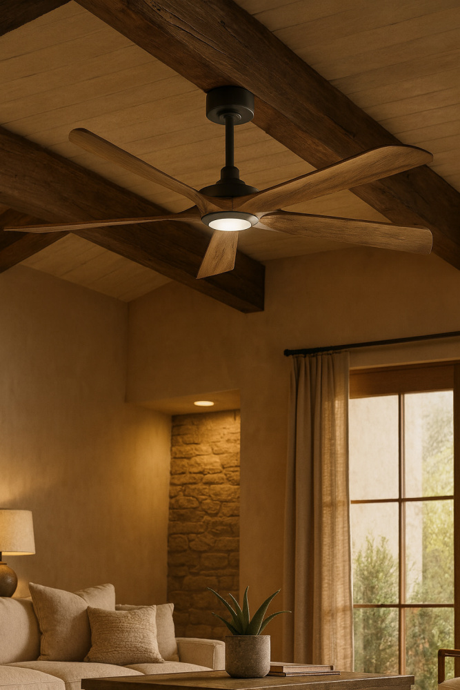 Layton’s versatile, transitional design features subtly curved wood blades, available in a variety of finish combinations to complement any interior living space. Integrated LEDs cast warm, dimmable illumination that fills your space with a comfortable atmosphere. Equipped with a 6-speed DC motor that is WiFi enabled and ready to connect right out of the box. Operated by the HIRO control or WiFi compatible with the Hinkley App.