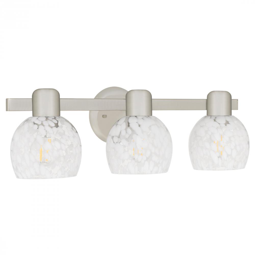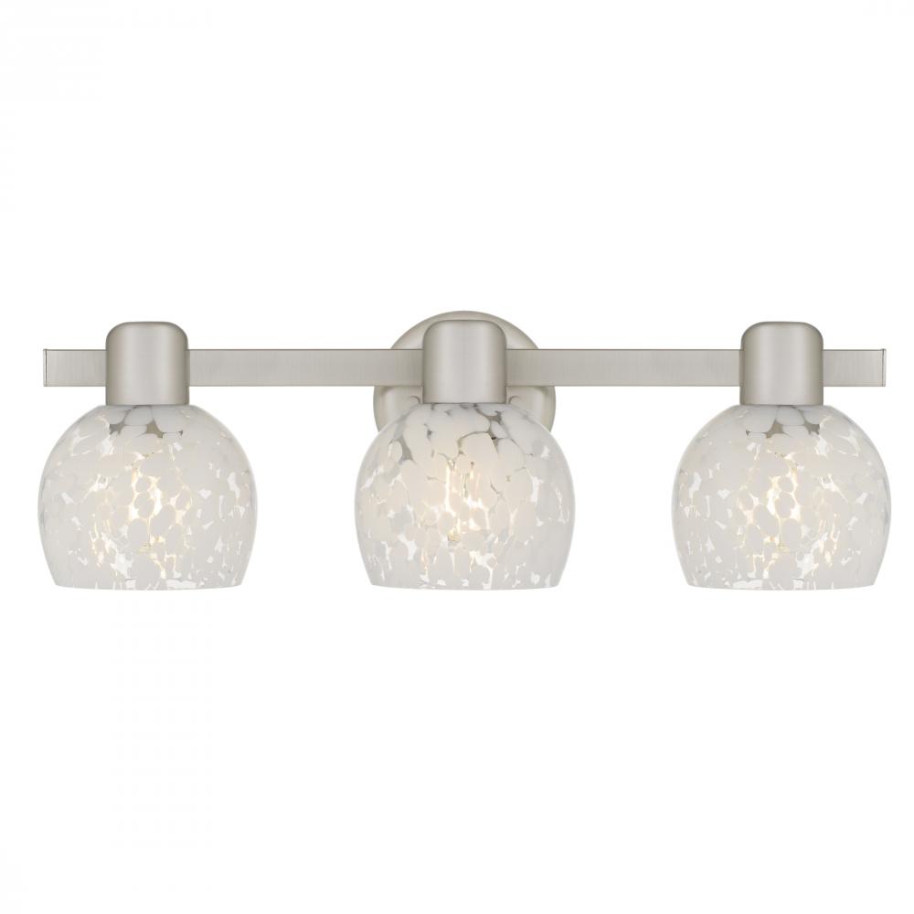 Softly luminous and artfully designed, the Layton vanity light brings a gentle elegance to your daily rituals. Its brushed nickel finish lends a sleek, modern touch, while the white dot glass shades glow like frosted petals kissed by morning light. Each sh