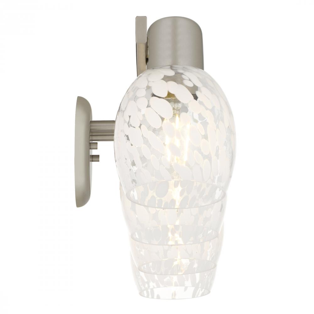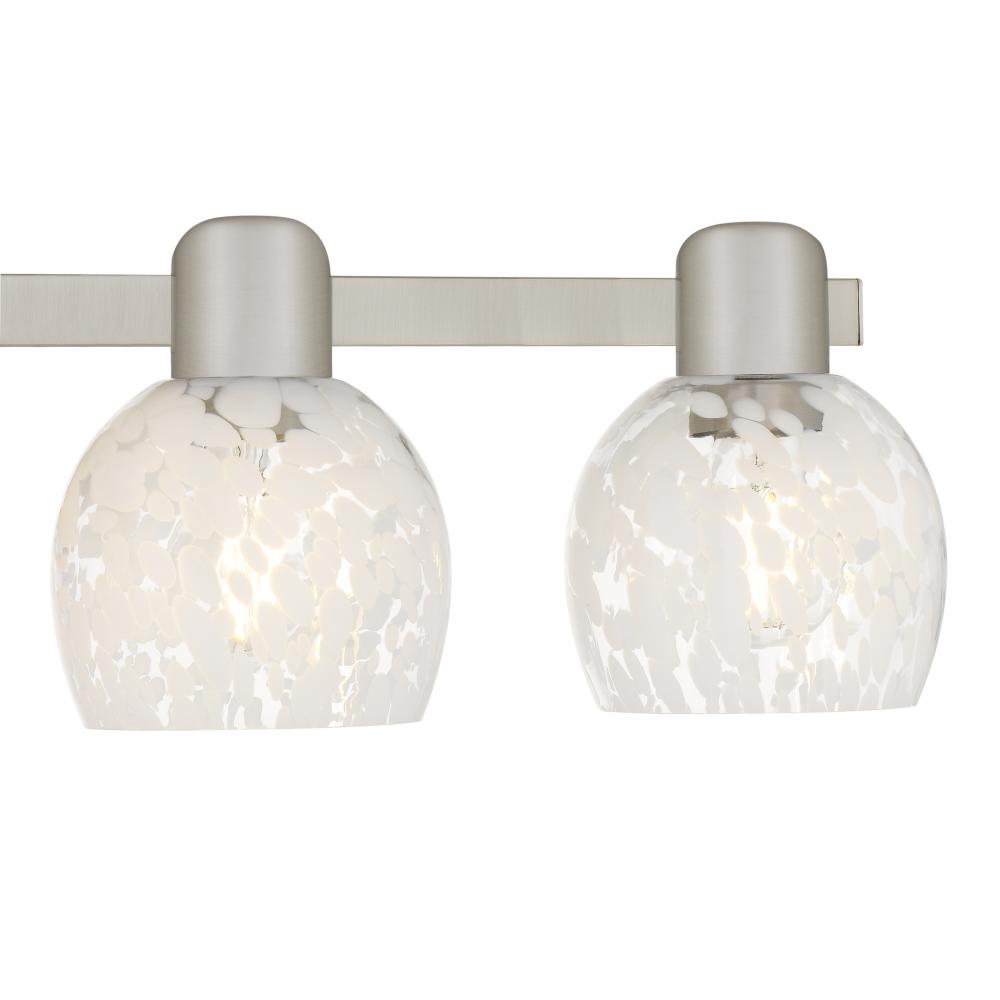 Softly luminous and artfully designed, the Layton vanity light brings a gentle elegance to your daily rituals. Its brushed nickel finish lends a sleek, modern touch, while the white dot glass shades glow like frosted petals kissed by morning light. Each sh