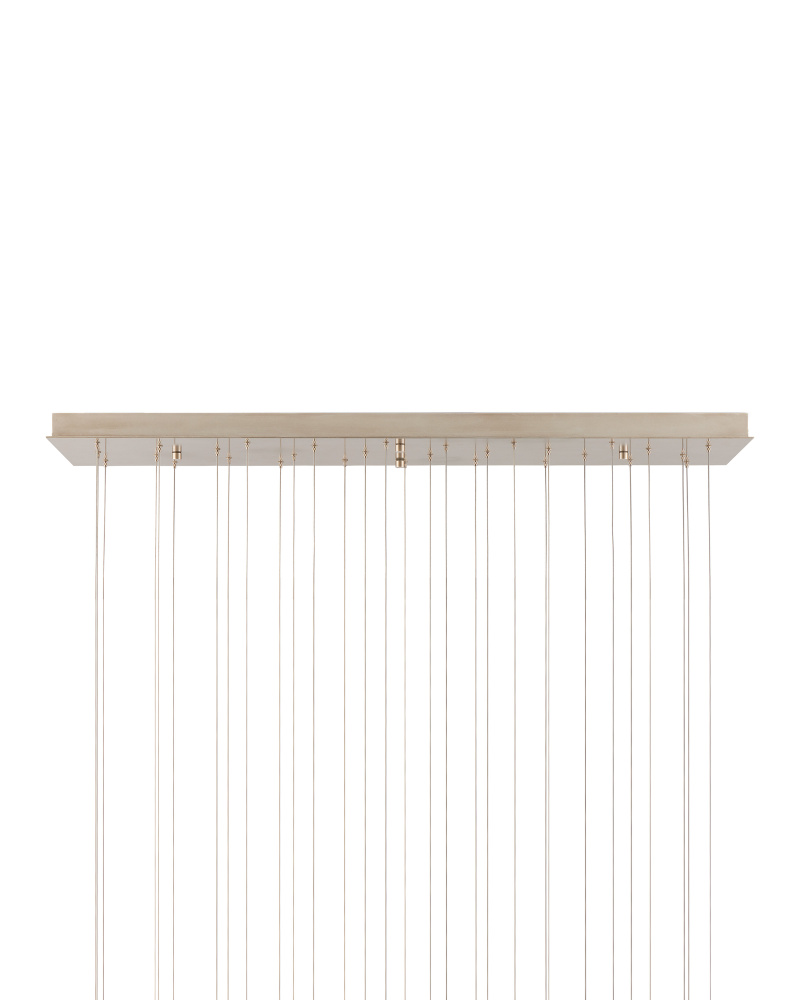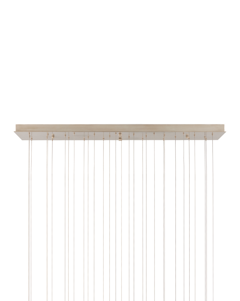 The Lazio 30-Light Multi-Drop Pendant has luminous shades carved from natural alabaster. The veining in the material makes each shade unique because each stone taken from the earth will have its own personality. The canopy of this piece is luminous in a painted silver finish. This fixture is among Currey & Company's multi-drop pendant collection, which includes multiple configurations.