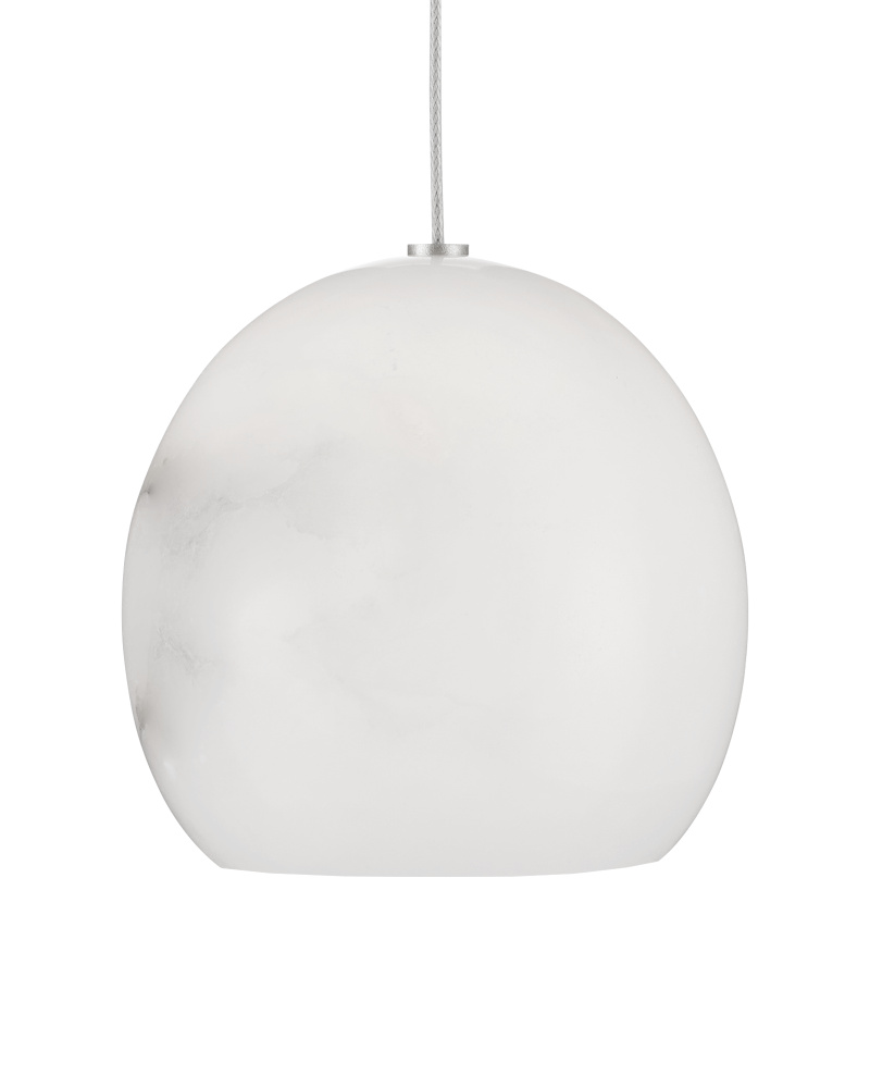 The Lazio Rectangular 7-Light Multi-Drop Pendant has luminous shades carved from natural alabaster. The veining in the material makes each shade unique because each stone taken from the earth will have its own personality. The canopy of this piece is luminous in a painted silver finish. This fixture is among Currey & Company's multi-drop pendant collection, which includes multiple configurations.