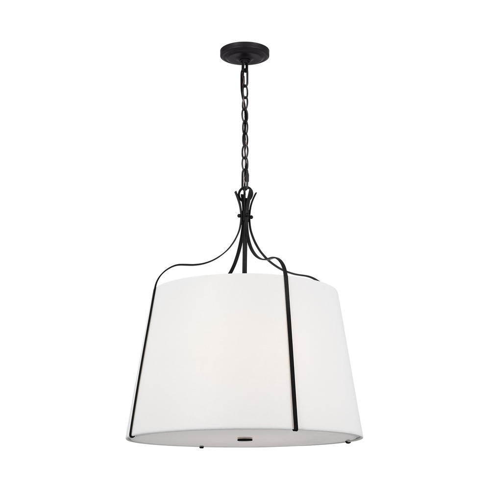 The Leander Pendant by Alexa Hampton makes an immediate impression in any space with its structural iron fixture ensconced in a linen barrel shade. Leander offers a modern twist on a classic lantern design Beautifully structured frame that maintains an open, airy feel