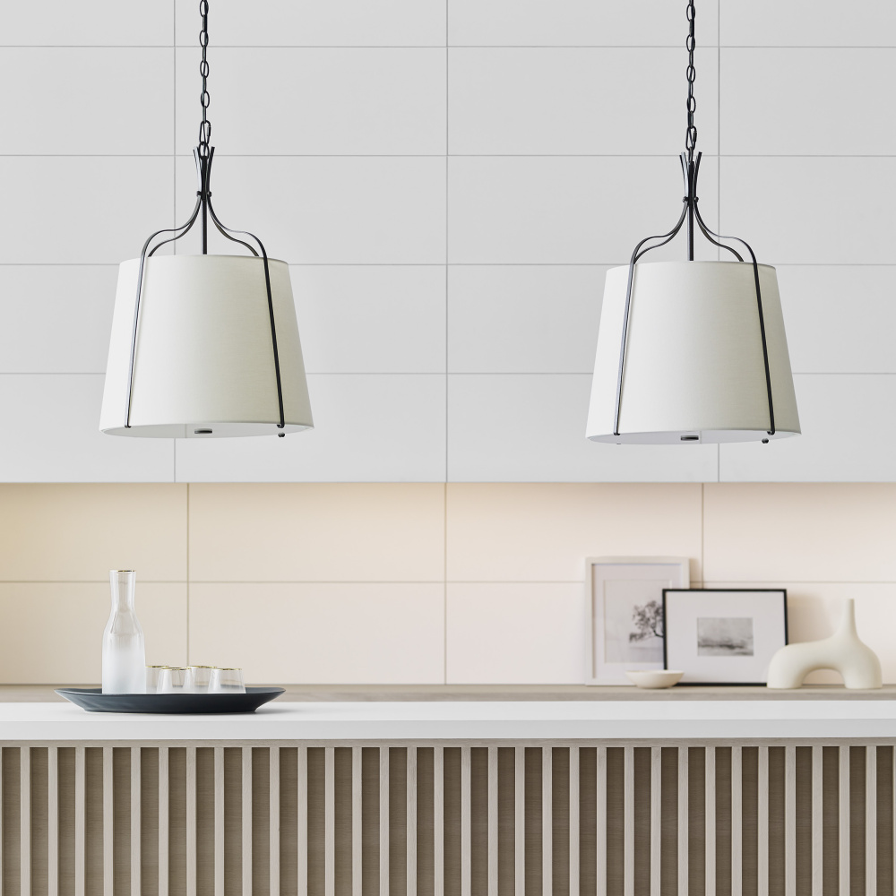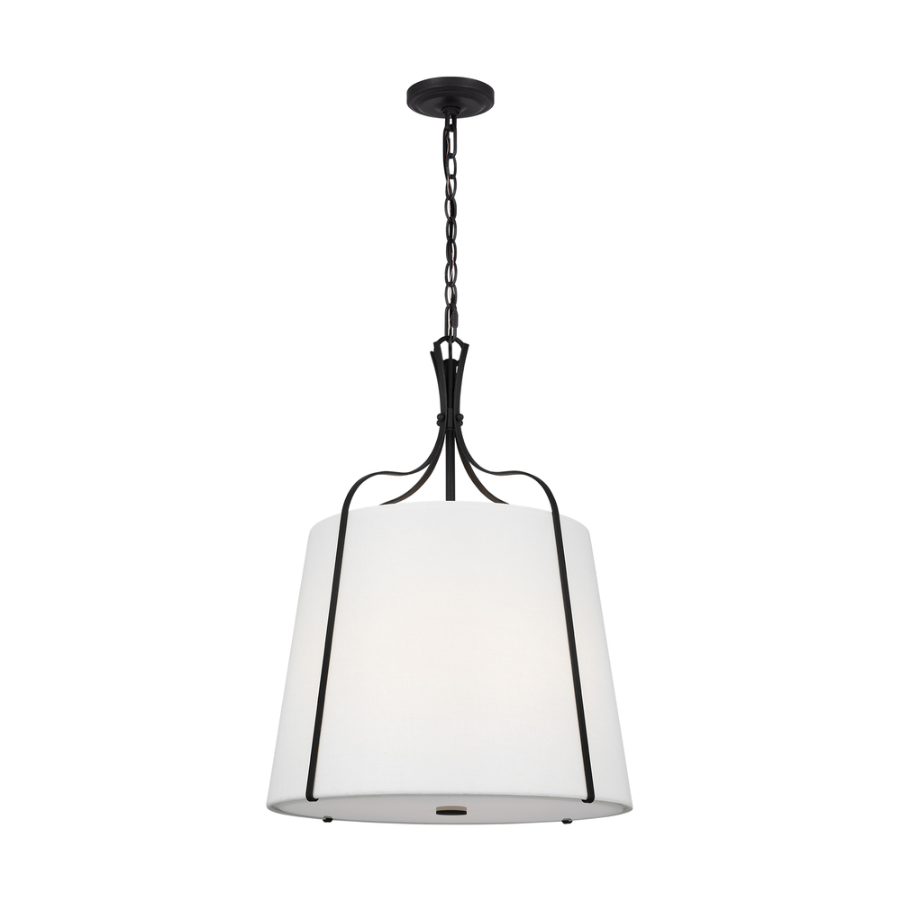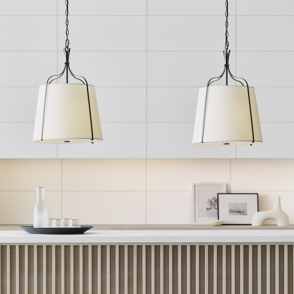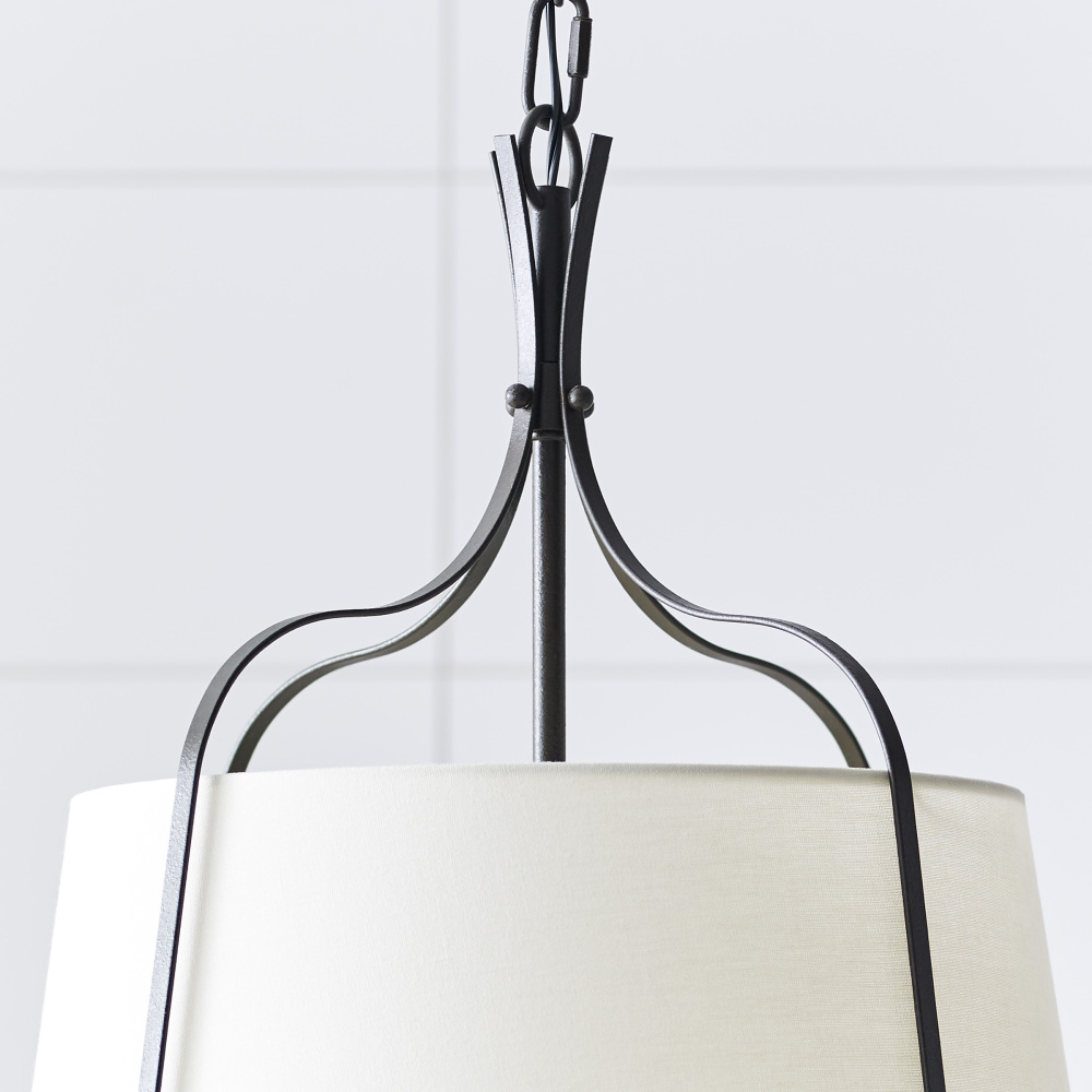 The Leander Pendant by Alexa Hampton makes an immediate impression in any space with its structural iron fixture ensconced in a linen barrel shade. Leander offers a modern twist on a classic lantern design Beautifully structured frame that maintains an open, airy feel