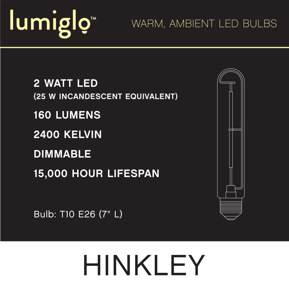 To create superior, softer light that sets the scene in any indoor or outdoor setting, Hinkley’s Lumiglo™ LED bulbs feature unique filament technology designed to cast a warm ambient glow. Dimmable functionality provides full control over brightness, allowing you to craft an atmosphere that perfectly accentuates your space.
