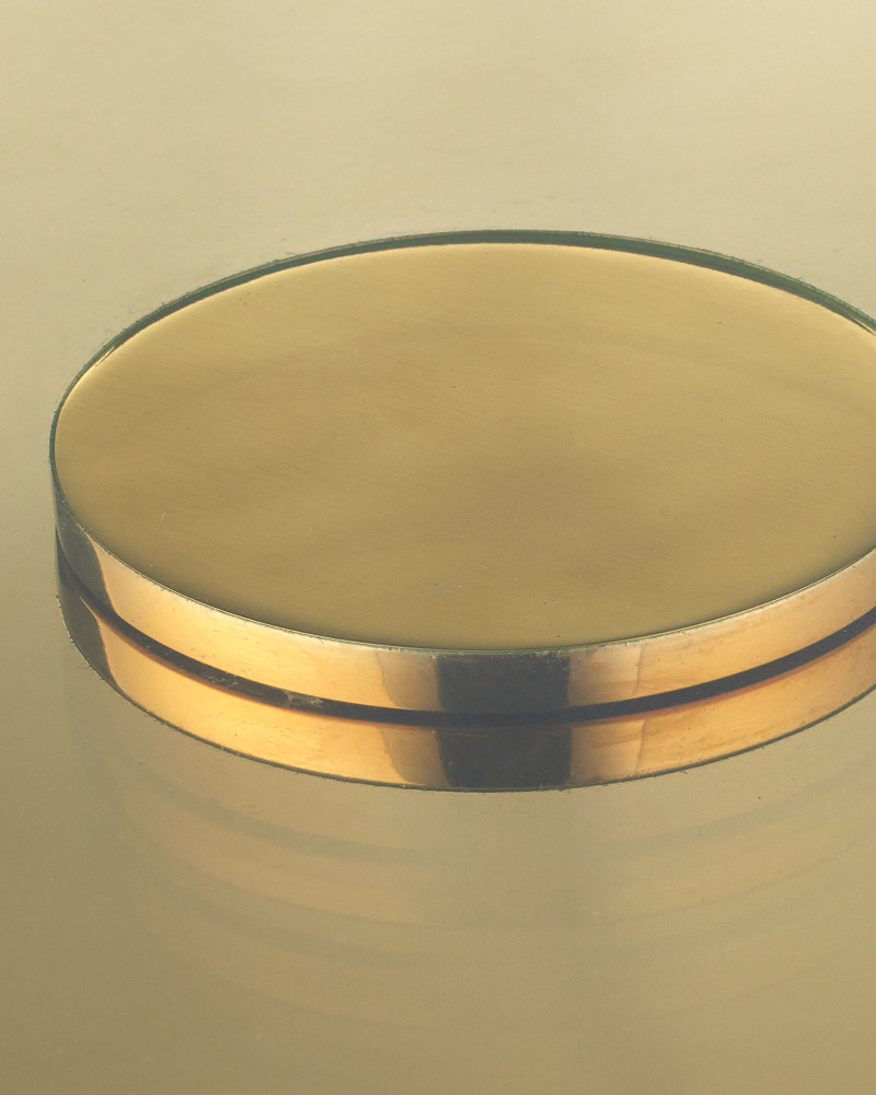 The Lemy Brass Cocktail Table is a mix master of shapes and textures. Made of stainless steel in a polished brass finish, the gold cocktail table has textural indentions that look as if they have been carved out of the metal. The contemporary piece is topped with a tempered glass top.