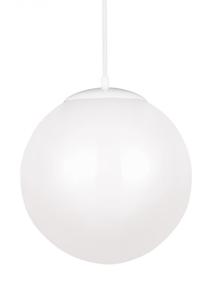 The Leo - Hanging Globe one light indoor pendant in white enhances the beauty of your home with ample light and style to match today's trends. While hanging globes are one of lighting's hottest trends, Sea Gull's timeless Leo Collection has been around for 50 years! Constantly evolving with the times, these classic pendants are now offered with NEW Clear Seeded glass and in Satin Aluminum finish. Adjustable cloth cords allow for unlimited variations of hanging heights. All glass softly diffuse the light, each fixture comes with 54†of cuttable cord to customize the installation exactly to your needs. Easily convert every piece in the collection to LED by purchasing LED replacement lamps sold separately. All fixtures are qualified and California Title 24 compliant and damp rated for use in sheltered, damp environments like bathrooms, covered patios or porches.