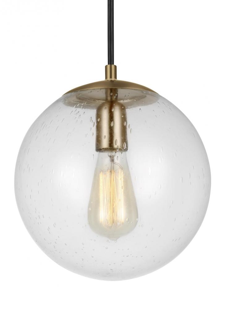 The Leo - Hanging Globe one light indoor pendant in satin brass is the perfect way to achieve your desired fashion or functional needs in your home. While hanging globes are one of lighting's hottest trends, Sea Gull's timeless Leo Collection has been around for 50 years! Constantly evolving with the times, these classic pendants are now offered with NEW Clear Seeded glass and in Satin Aluminum finish. Adjustable cloth cords allow for unlimited variations of hanging heights. All glass softly diffuse the light, each fixture comes with 54†of cuttable cord to customize the installation exactly to your needs. Easily convert every piece in the collection to LED by purchasing LED replacement lamps sold separately. All fixtures are qualified and California Title 24 compliant and damp rated for use in sheltered, damp environments like bathrooms, covered patios or porches.