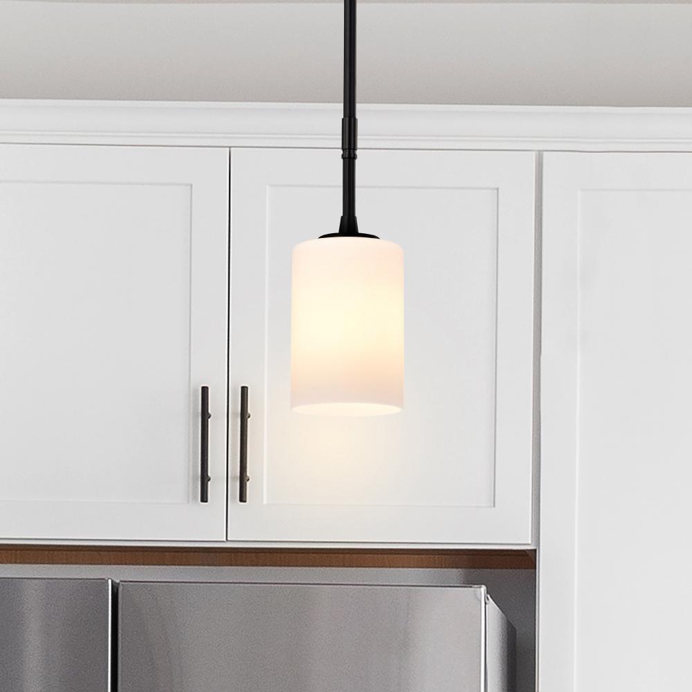 Liam; 1 Light Mini Pendant; Matte Black; White Opal Glass