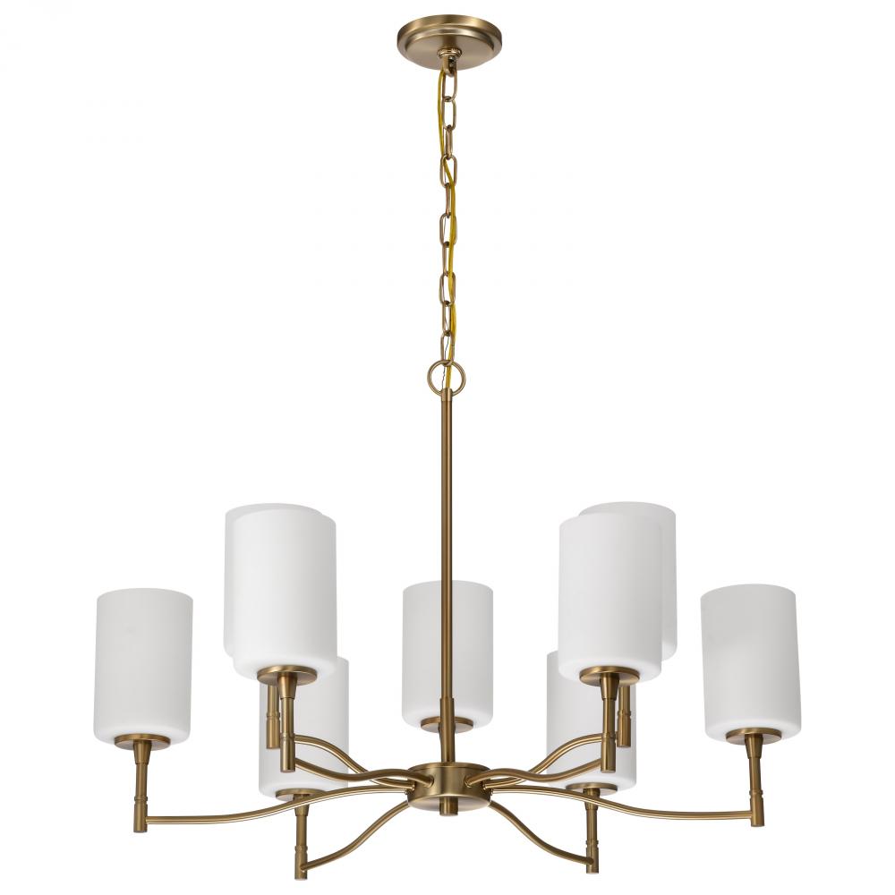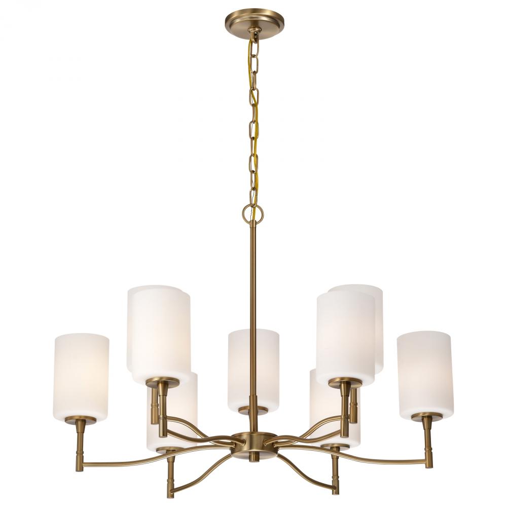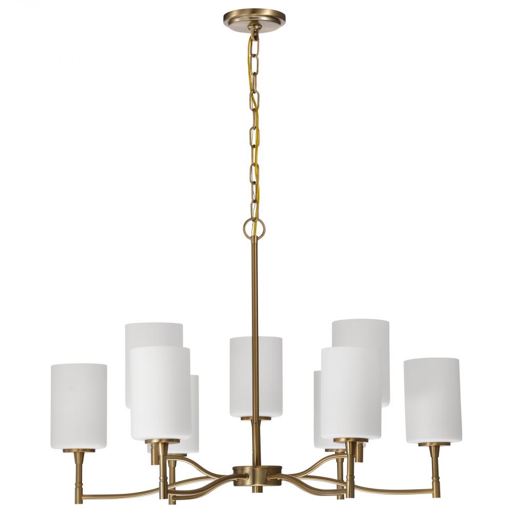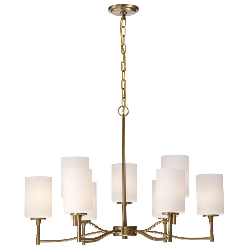Liam; 9 Light Chandelier; Burnished Brass; White Opal Glass