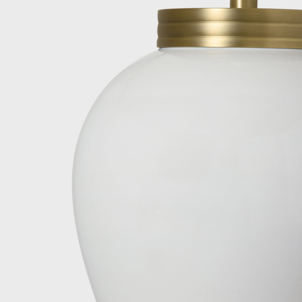 The Lilian table lamp by Lauren Ralph Lauren draws inspiration from the rich textures and deep hues of the iconic Lauren Denim archives, translating timeless design elements into an elegant lighting solution. The lamp features a traditional ginger jar vase silhouette that exudes classic charm, enhanced by the subtle texture and detailing that reflect Ralph Lauren’s signature aesthetic. A generous, tailored shade completes the look, offering a harmonious contrast to the base while providing soft, ambient illumination.