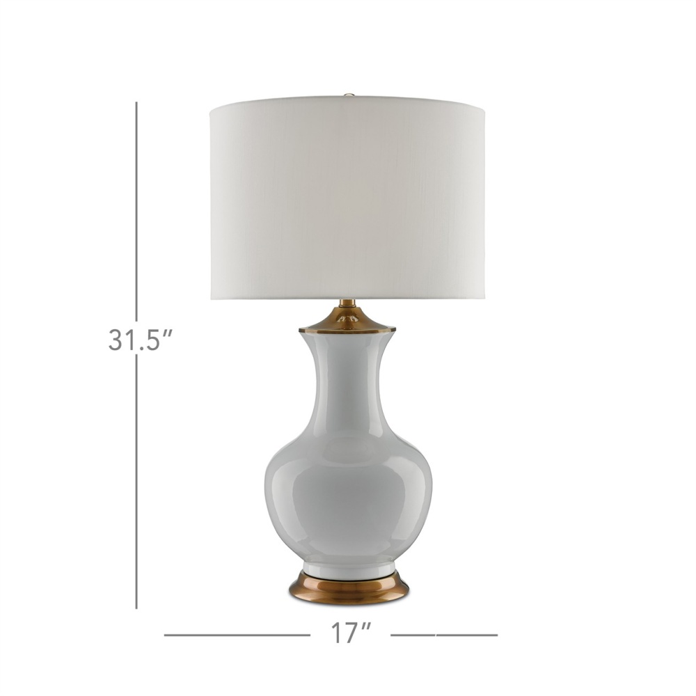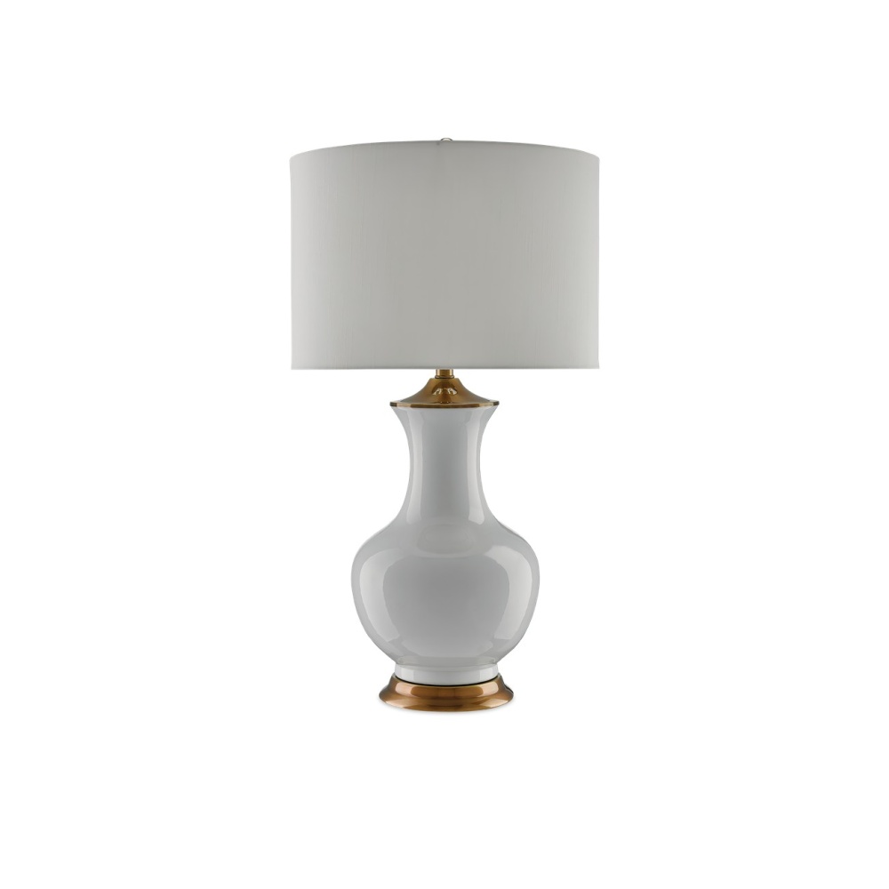 Serenity has a profile in the white version of our Lilou Table Lamp with its lovely vase-like profile. Made of white ceramic with metal hardware that has been treated to an antique brass finish, the lamp stands 32 inches high and is topped with an off-white shantung drum shade. About as classic as they come, the Lilou is also available in a handsome green.